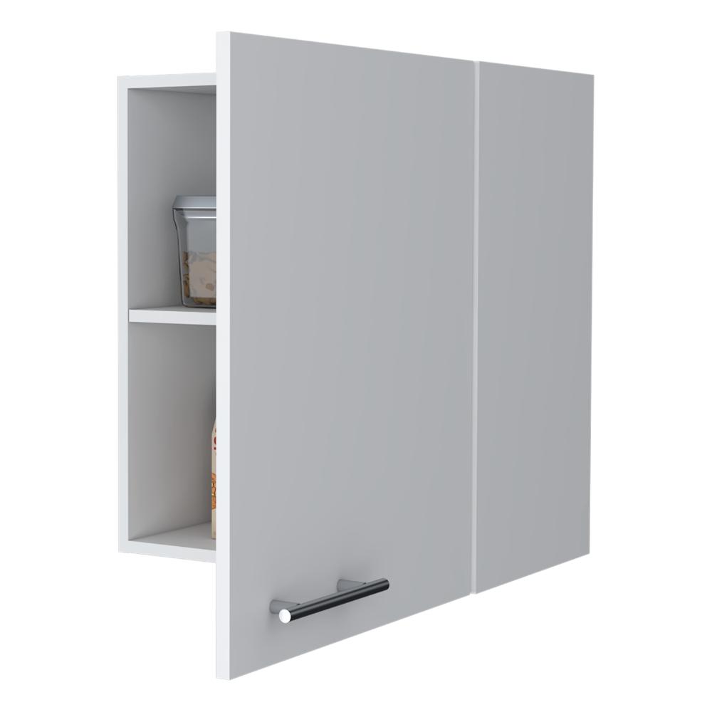 Alacena, con una puerta abatible, espacio para guardar objetos como libros y decoración y facil instalación.