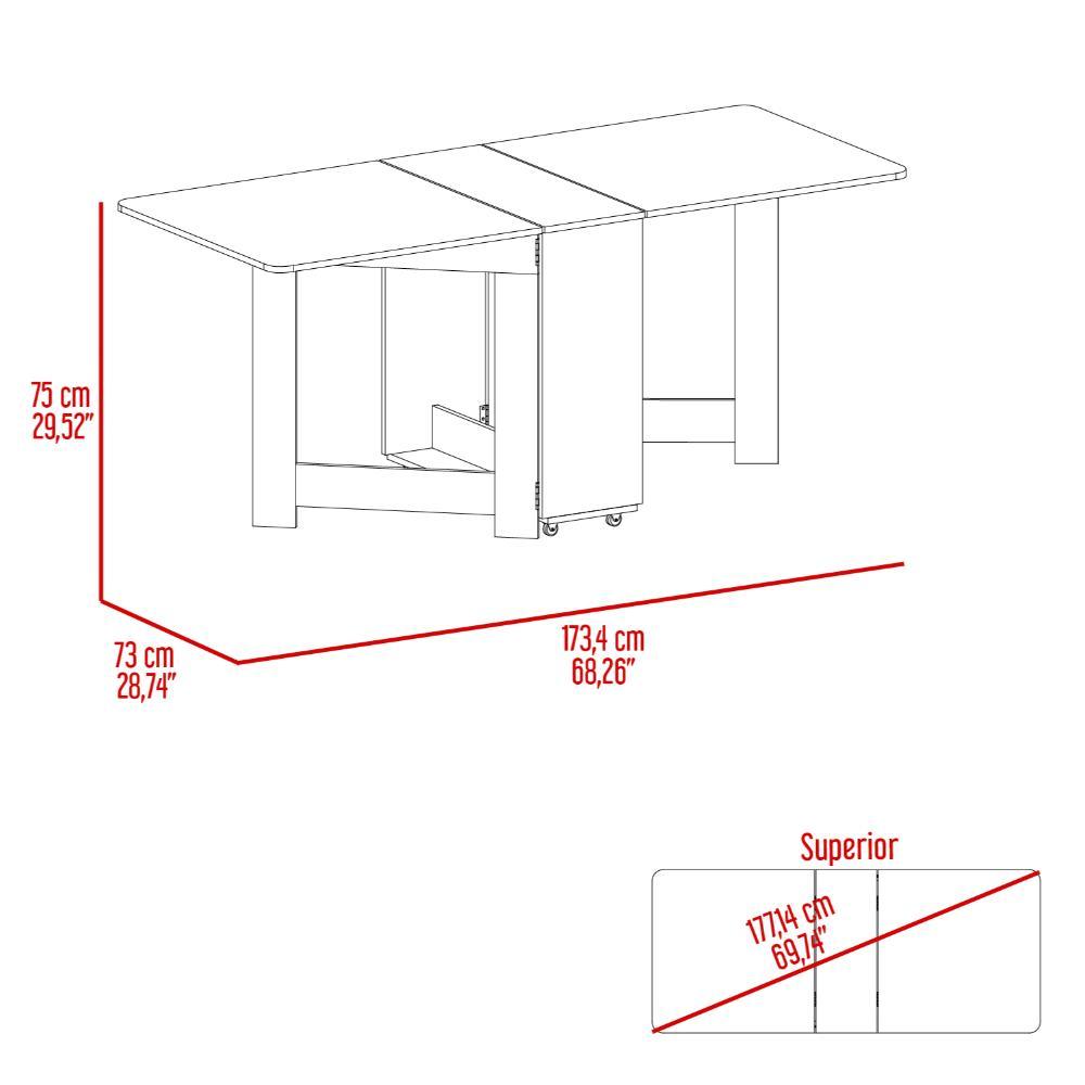 Alacena, con tres puertas batientes, mesa móvil plegable, amplios espacios para guardar alimentos y electrodomésticos.