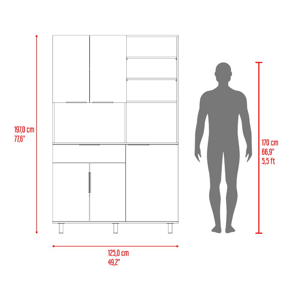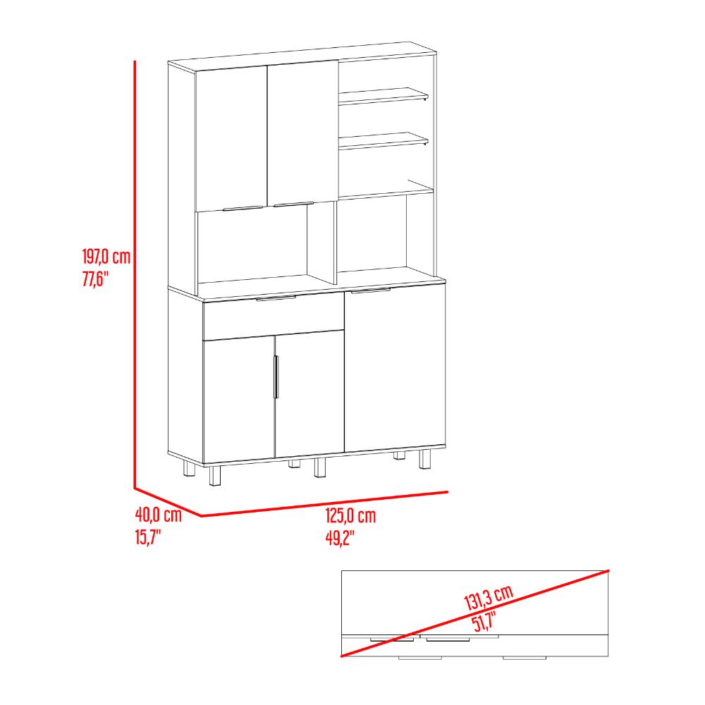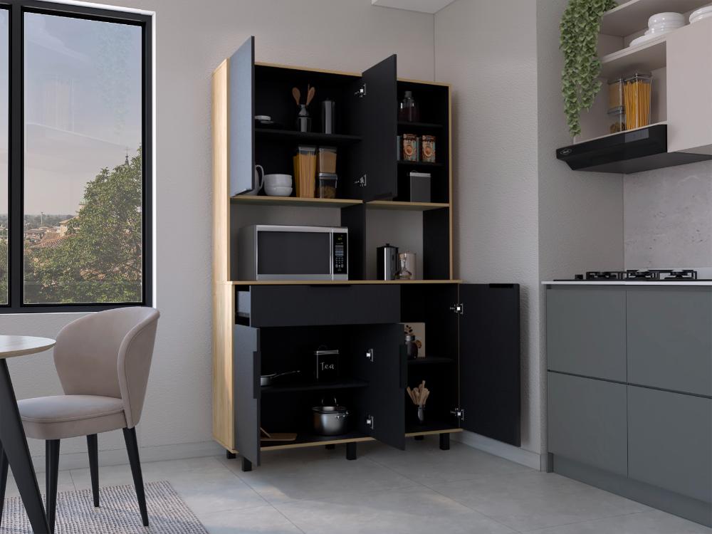 Alacena, con amplios espacios para almacenamiento, patas y manijas de acero, diseño moderno, fácil armado