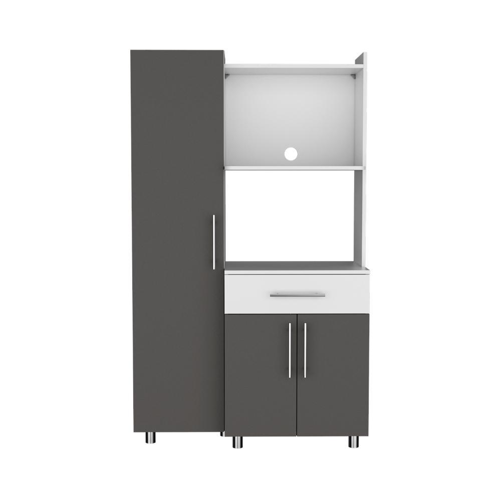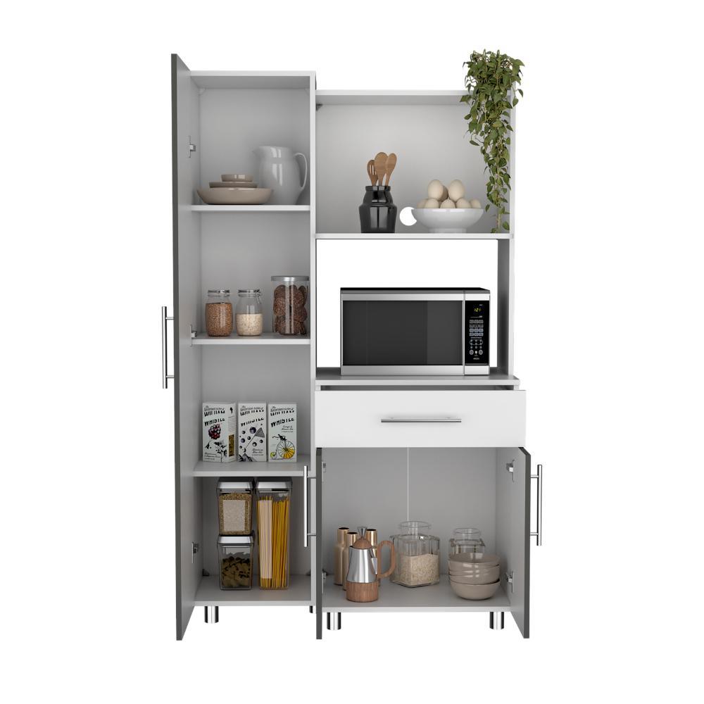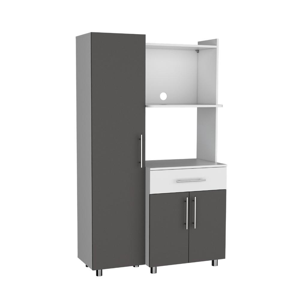 Alacena Panter, Blanco Duqueza y Plata Oscuro, con espacio para microondas puertas abatibles y un cajon