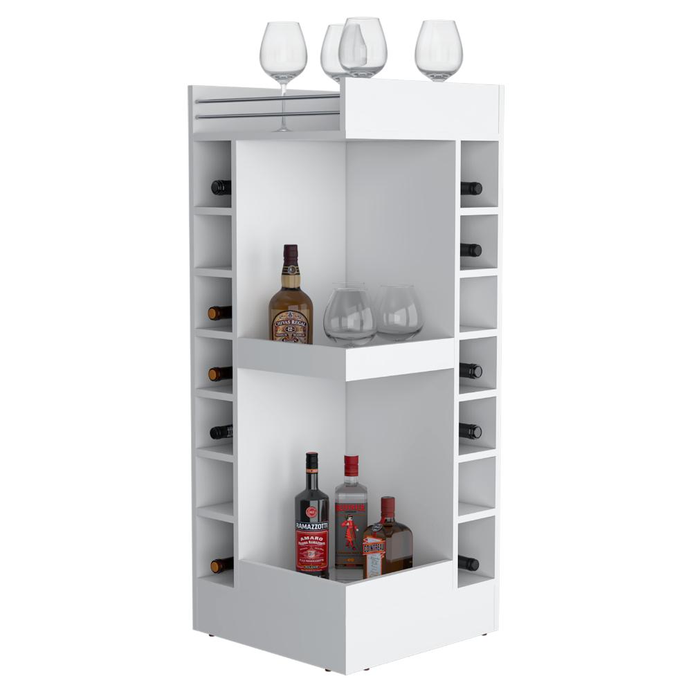 Bar Bajo Esquinero Lym, Blanco, con espacio para ubicar botellas ZF