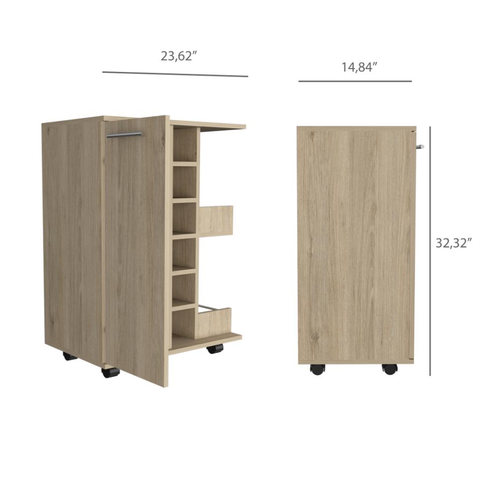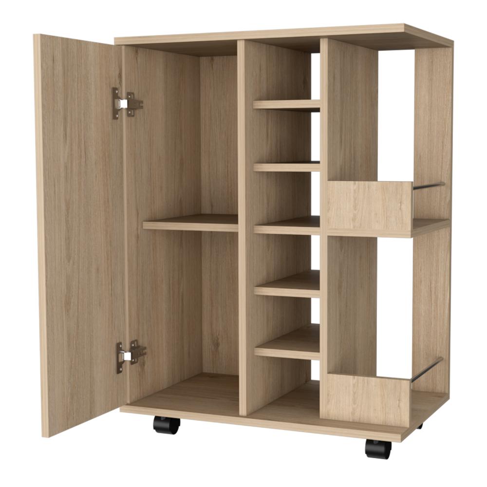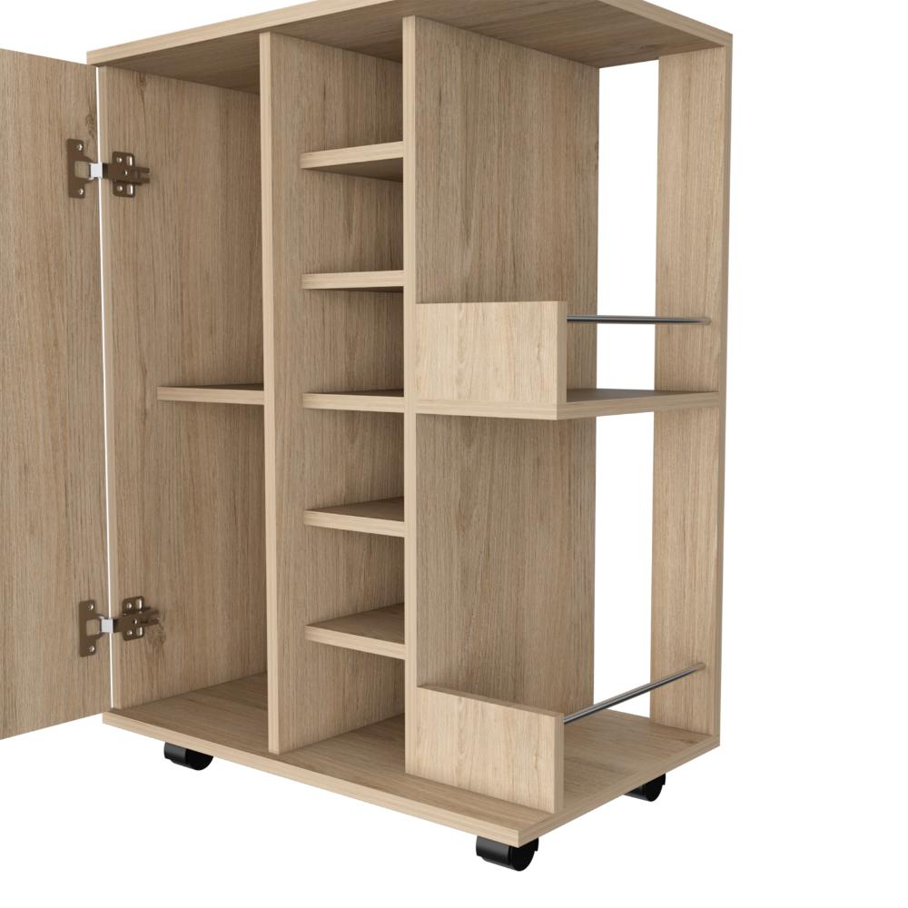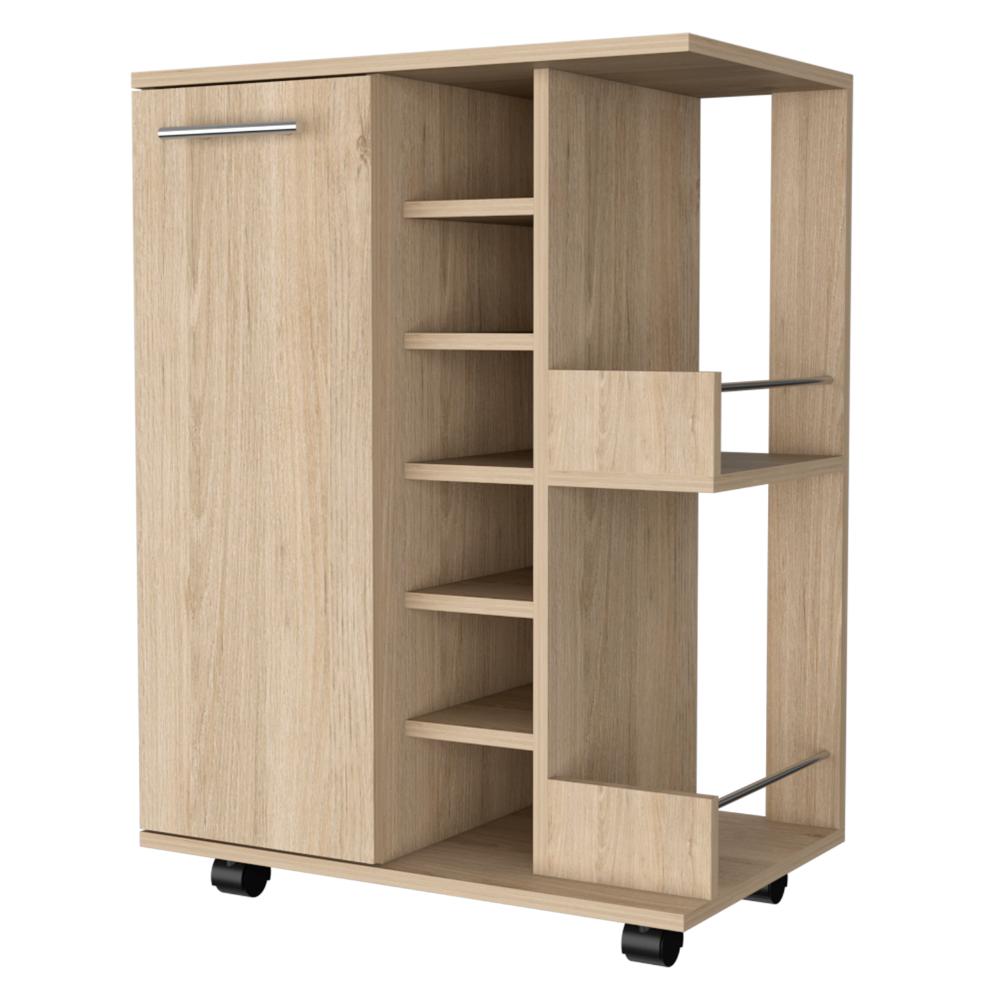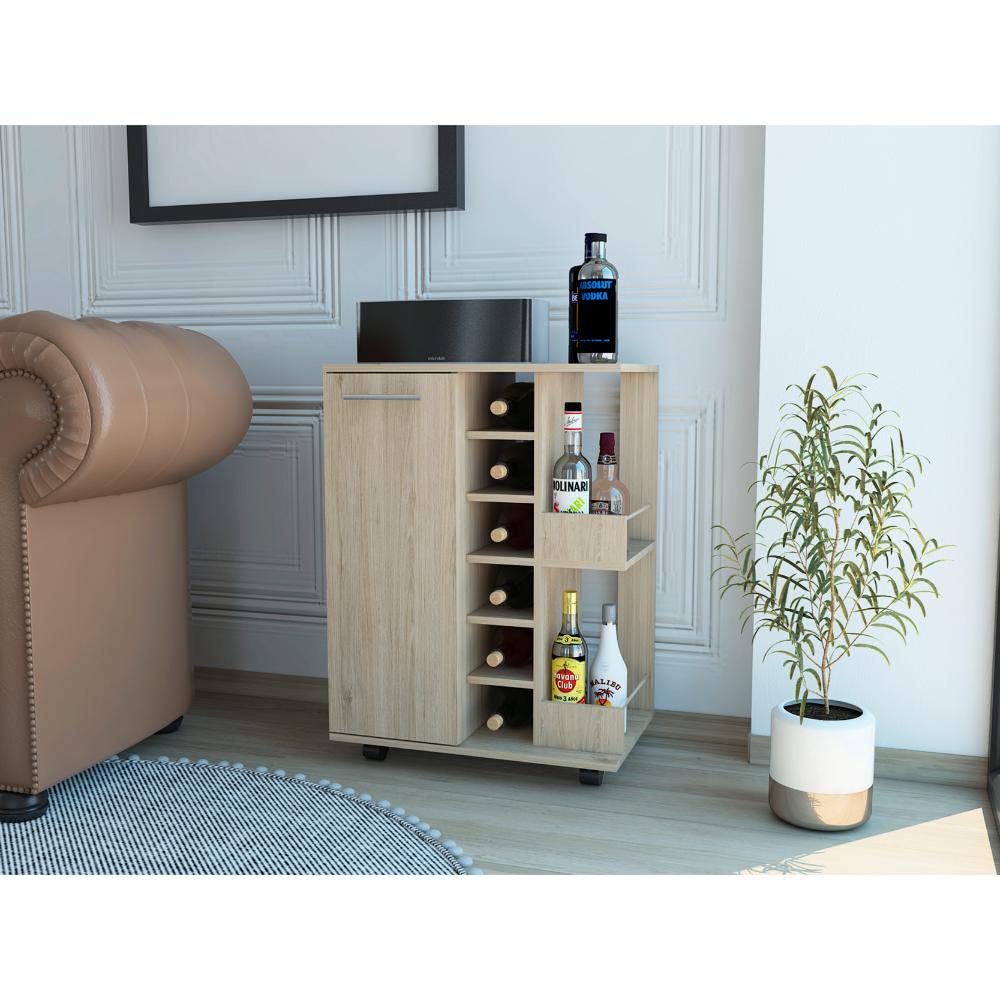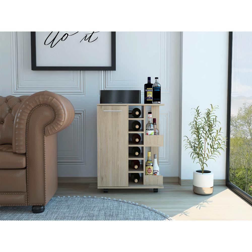 Bar, Con espacio para ubicar botellas de vino, una puerta y un entrepaño móvil, rodachinas.