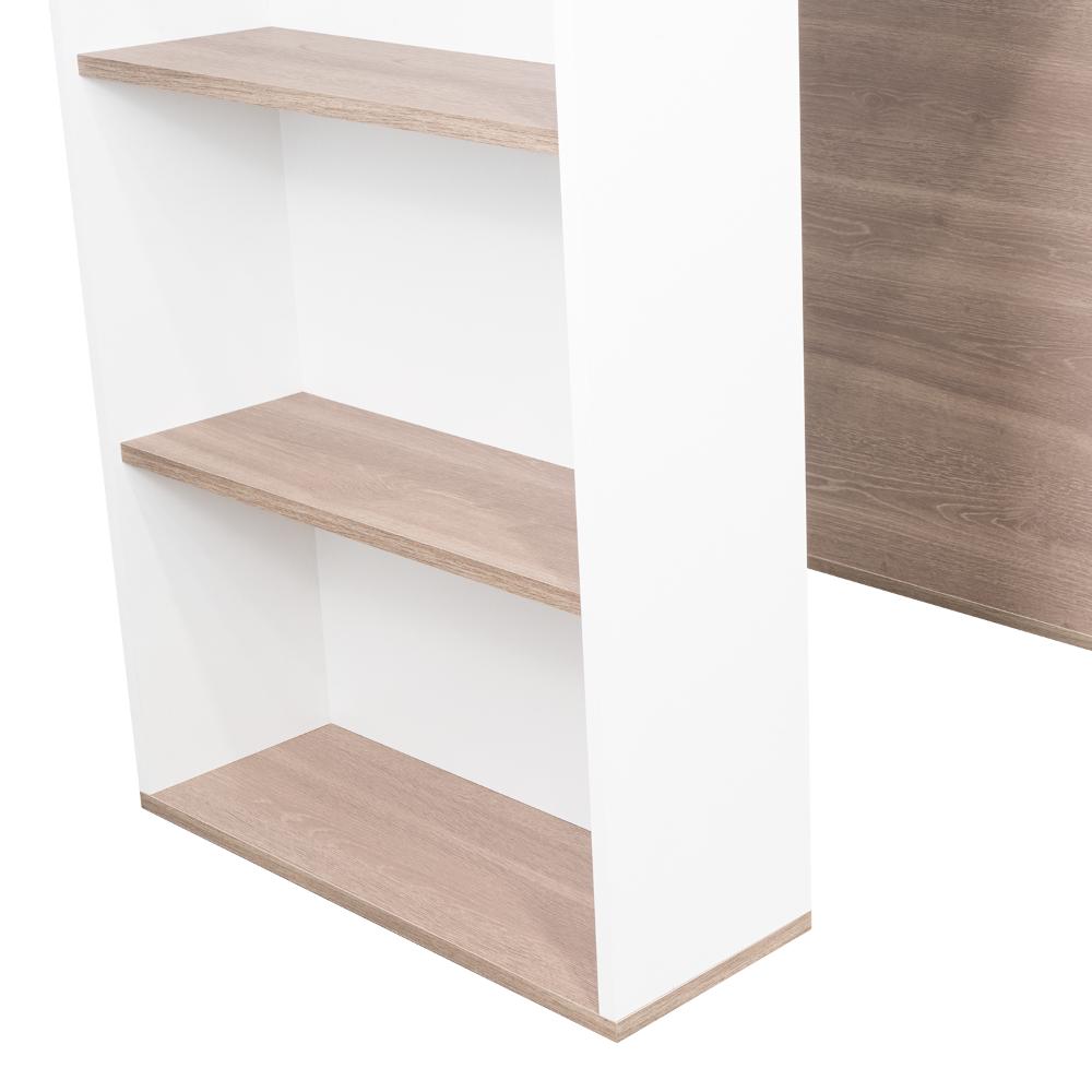 Elaborado en Madera aglomerada MDP, recubierta con láminas melamínicas de excelente calidad, en color Bardolino y Blanco.