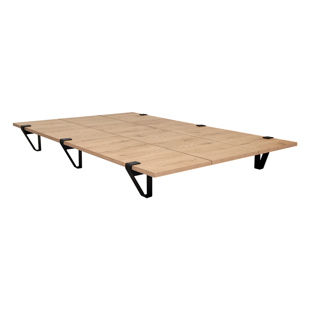 Elaborada en 3 listones de 53,3 x 197 en Madera MDP cal 25mm y 3 soportes en platina color negro