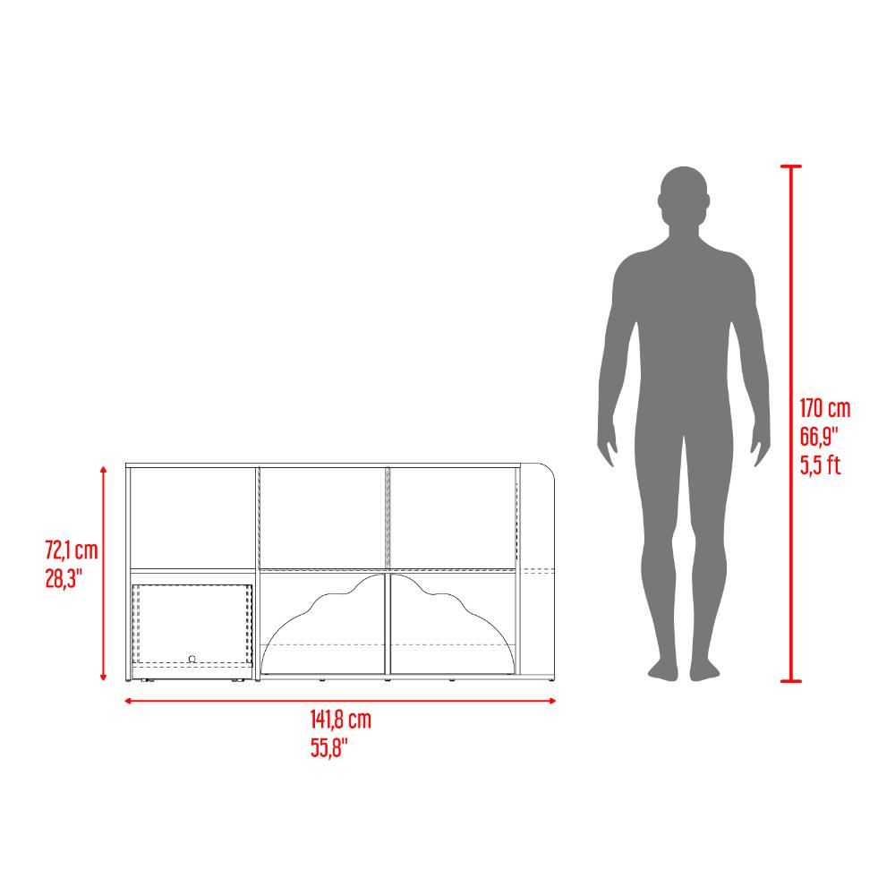 Elaborado en Madera aglomerada MDP, recubierta con láminas melamínicas de excelente calidad, en color Capri y Fresno Europeo.