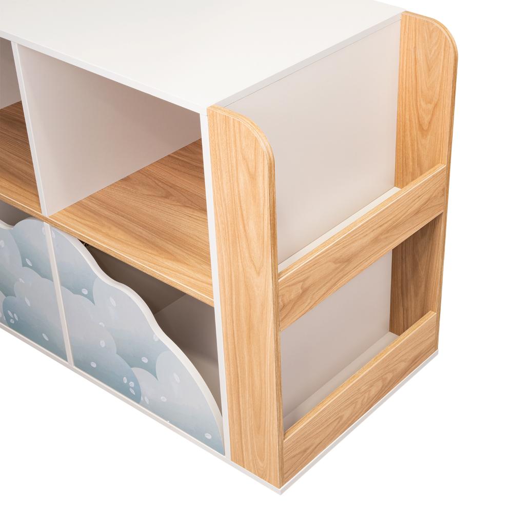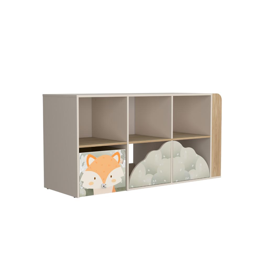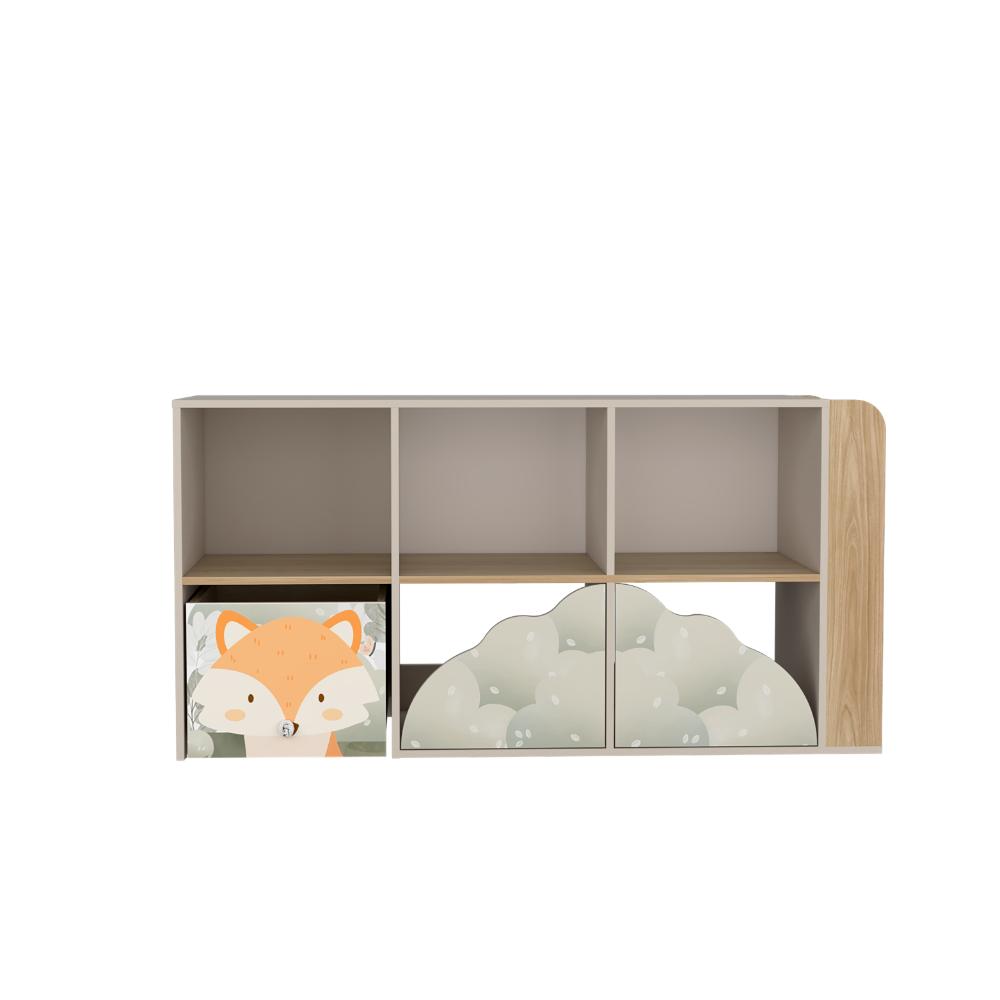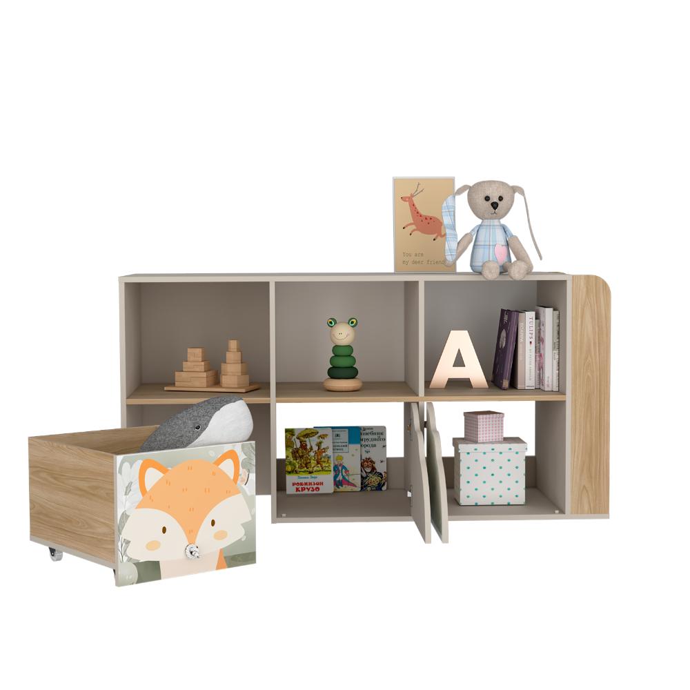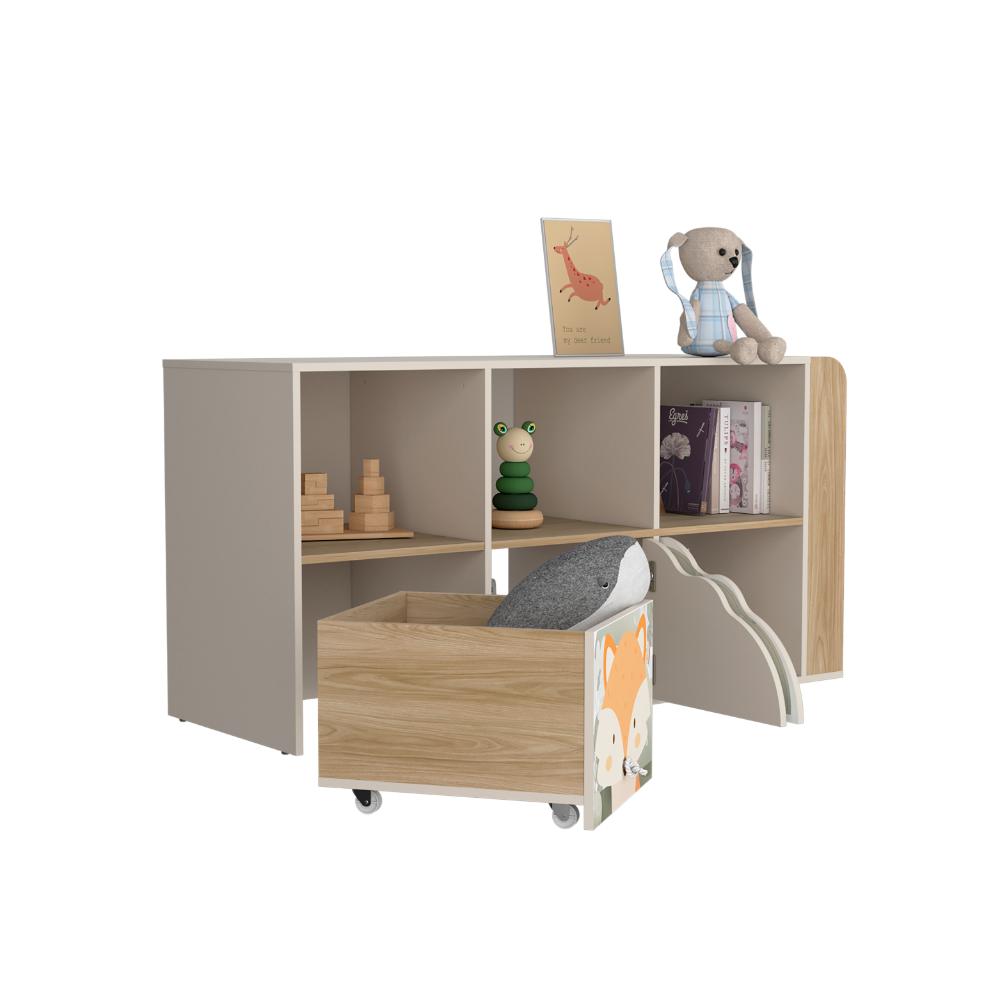 Biblioteca a Piso , con entrepaños para ubicar libros y/o juguetes, amplios espacios de almacenamiento, cajón movible con manija de lazo.
