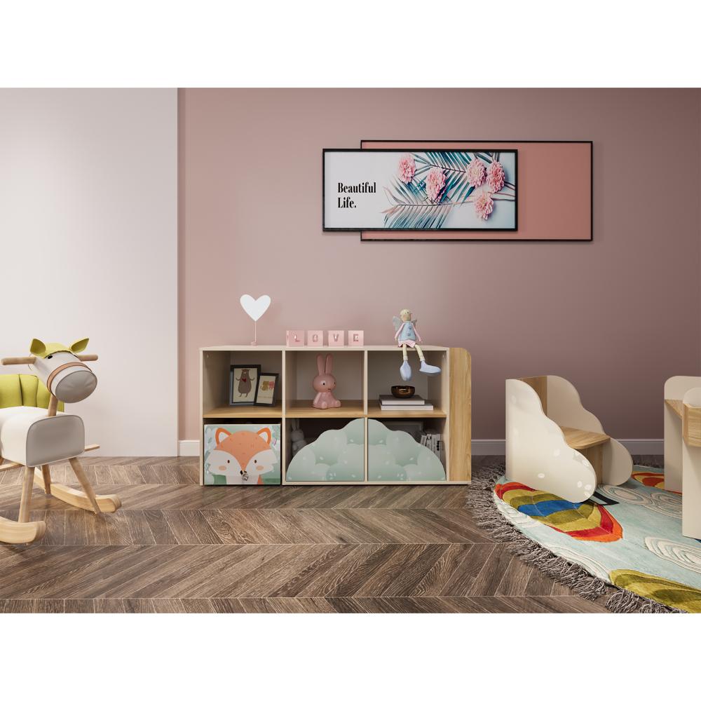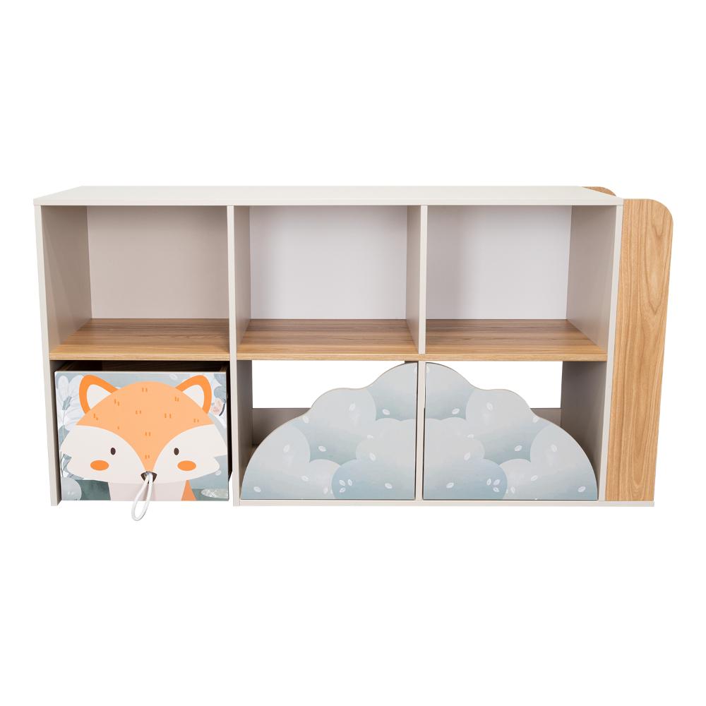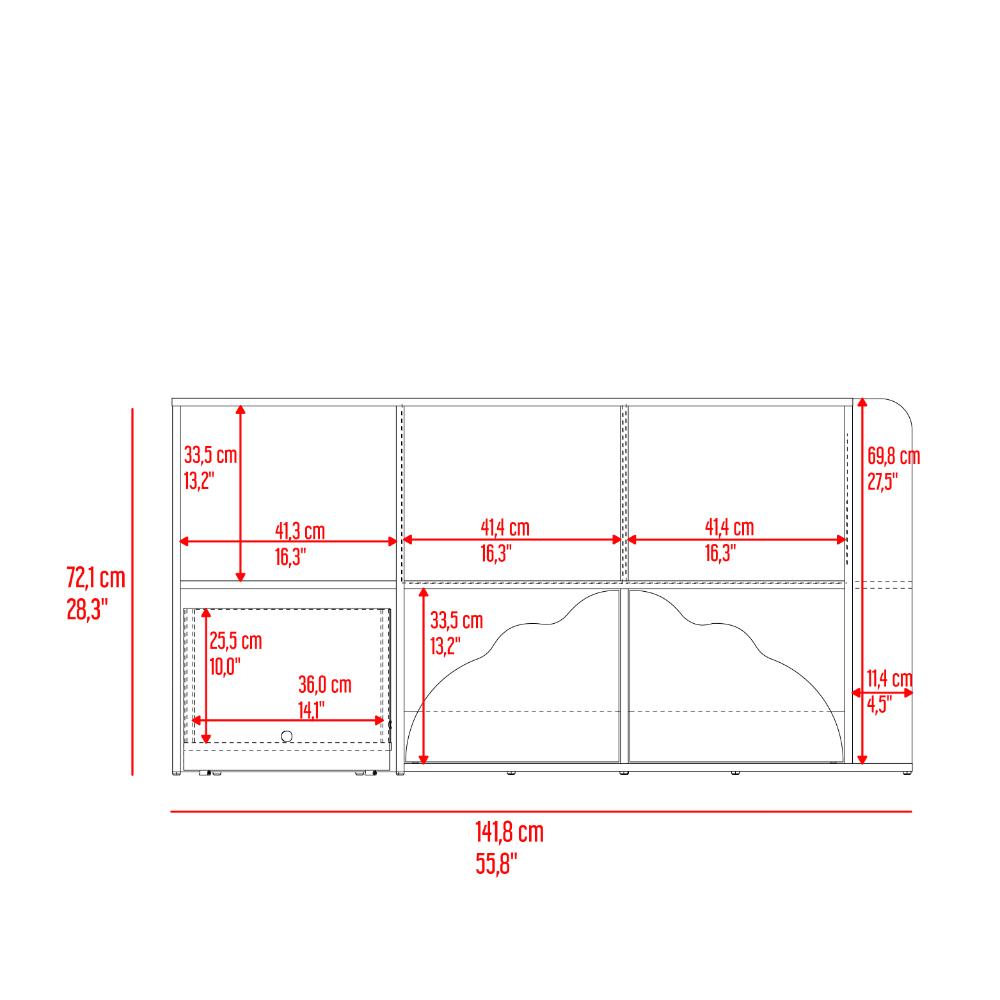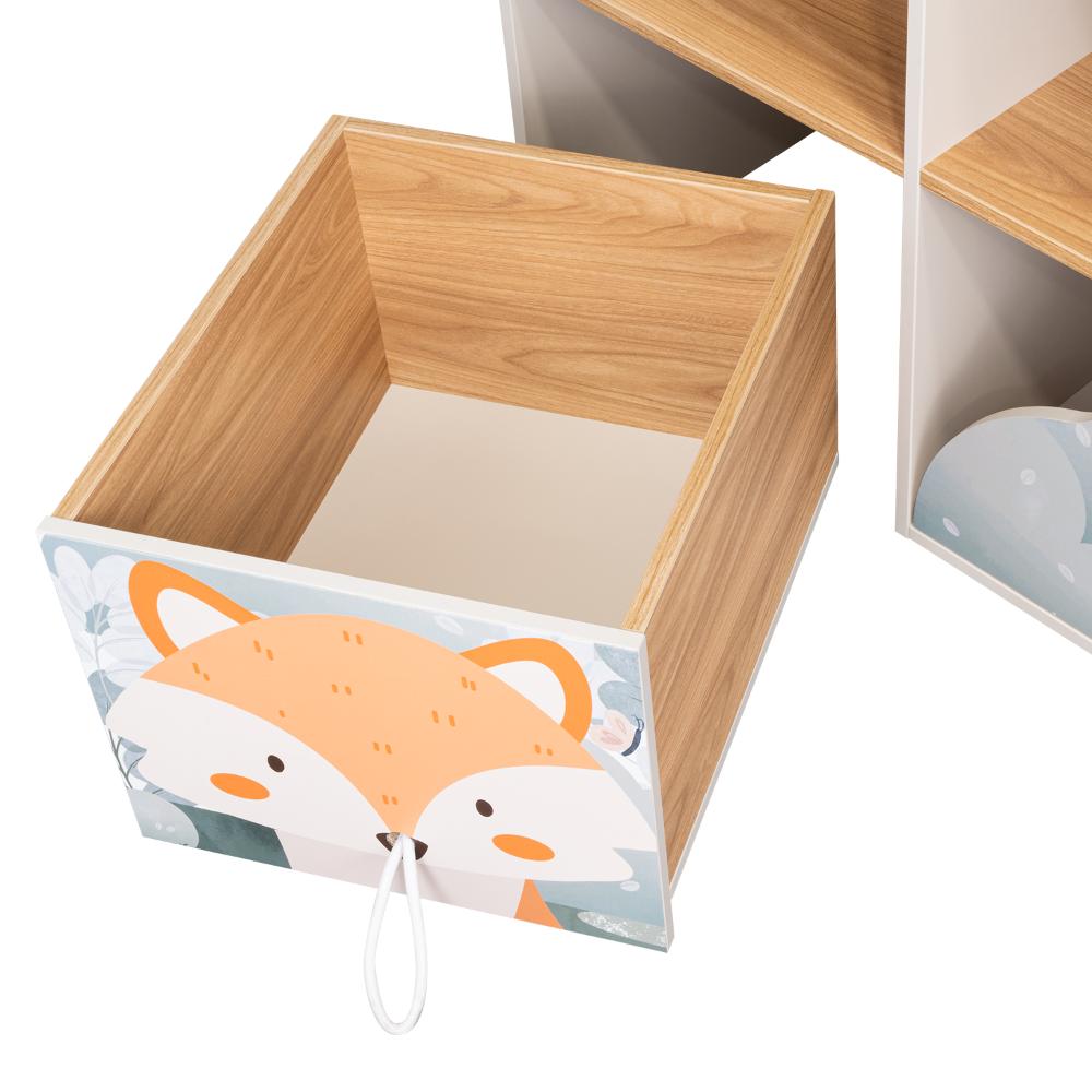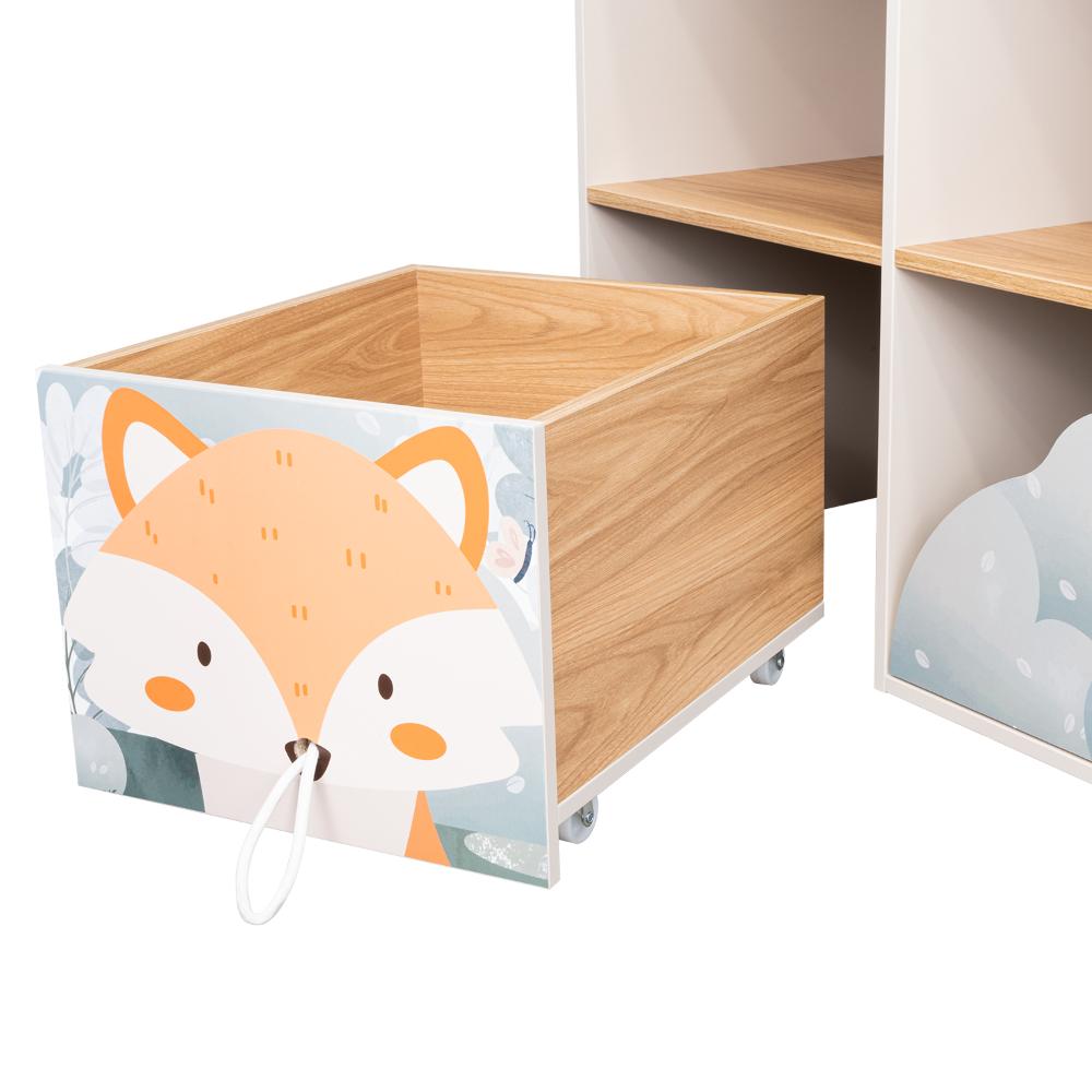 Biblioteca a Piso , con entrepaños para ubicar libros y/o juguetes, amplios espacios de almacenamiento, cajón movible con manija de lazo.