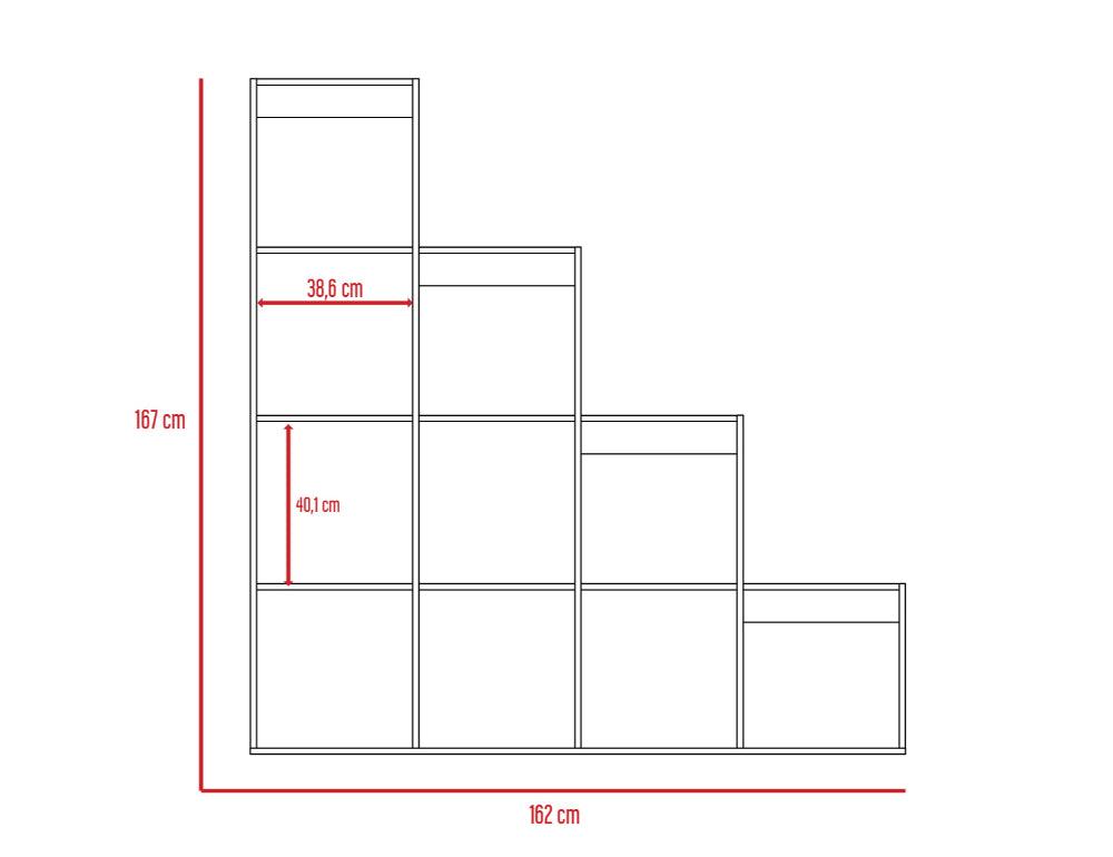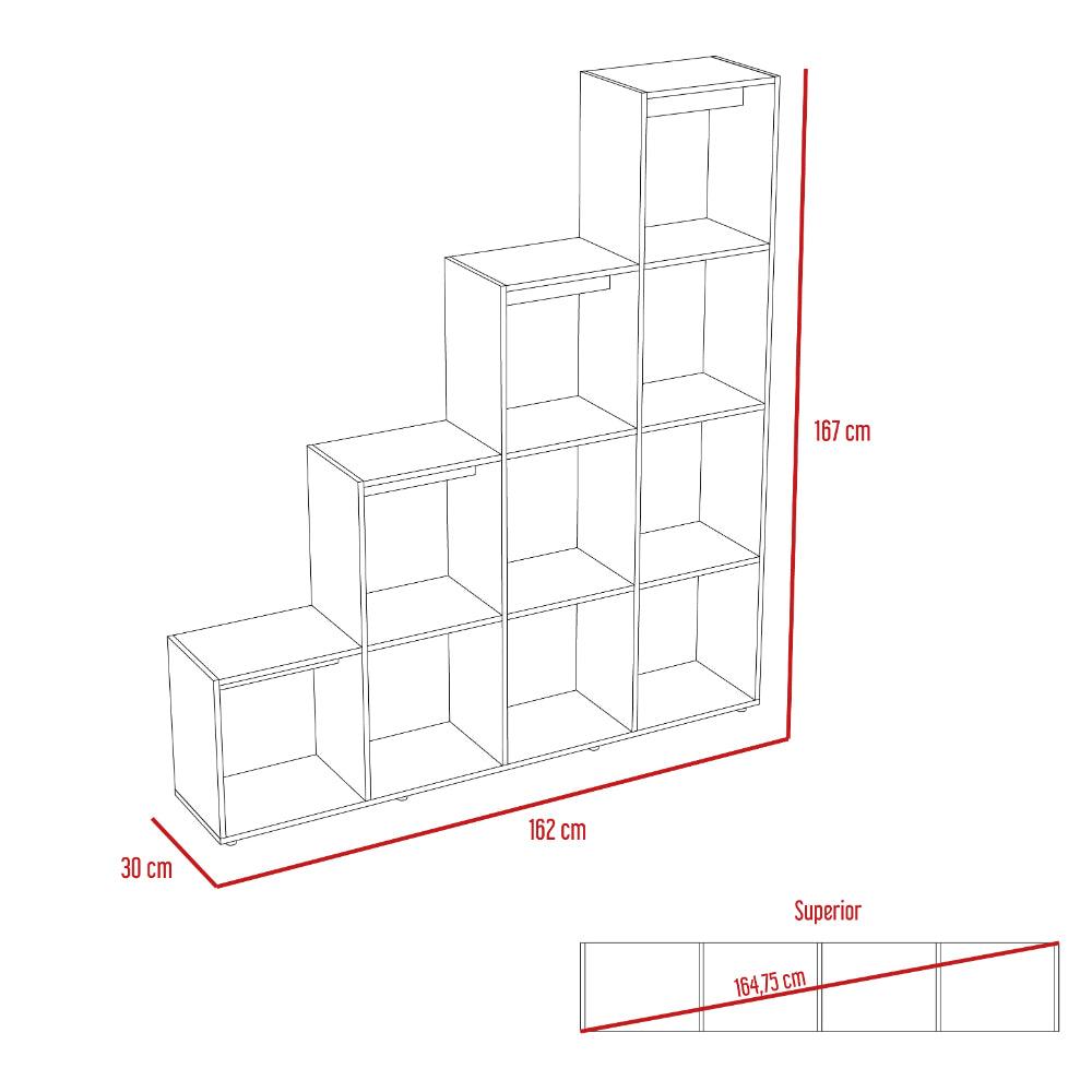Biblioteca, con excelente capacidad de almacenamiento, espacio para libros y objetos decorativos, permite ubicarse como divisor de espacios, fácil instalación y diseño contemporáneo.