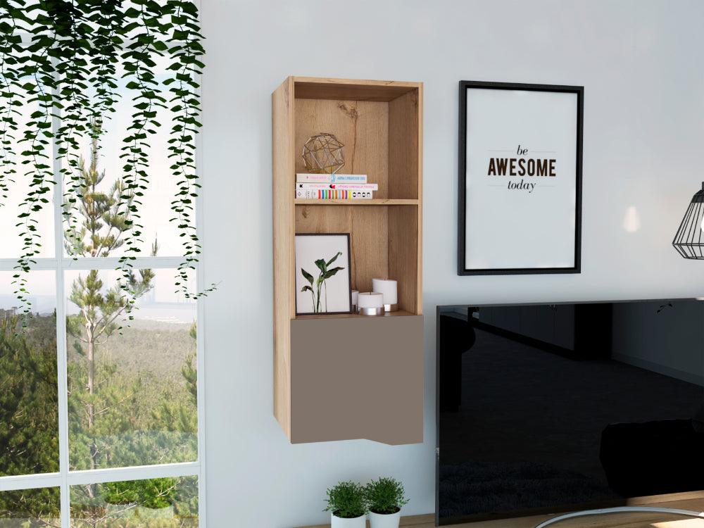 Biblioteca Flotante Yeko, Café Claro y Gris, facil instalacion a la pared