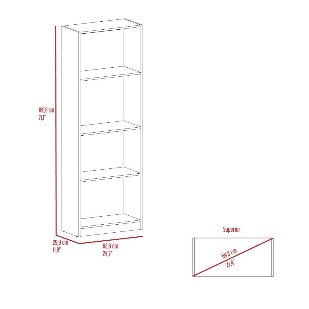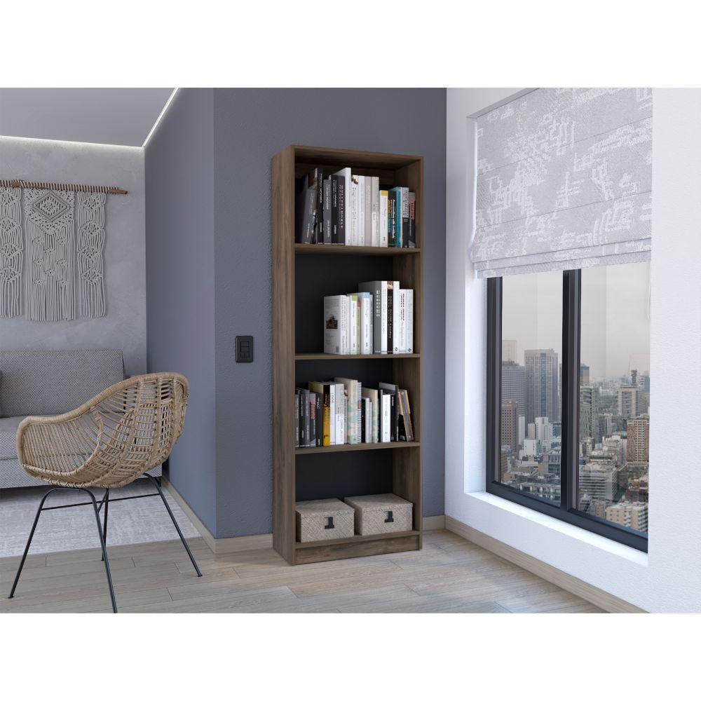 Biblioteca, con cuatro entrepaños para ubicar libros y elementos decorativos.