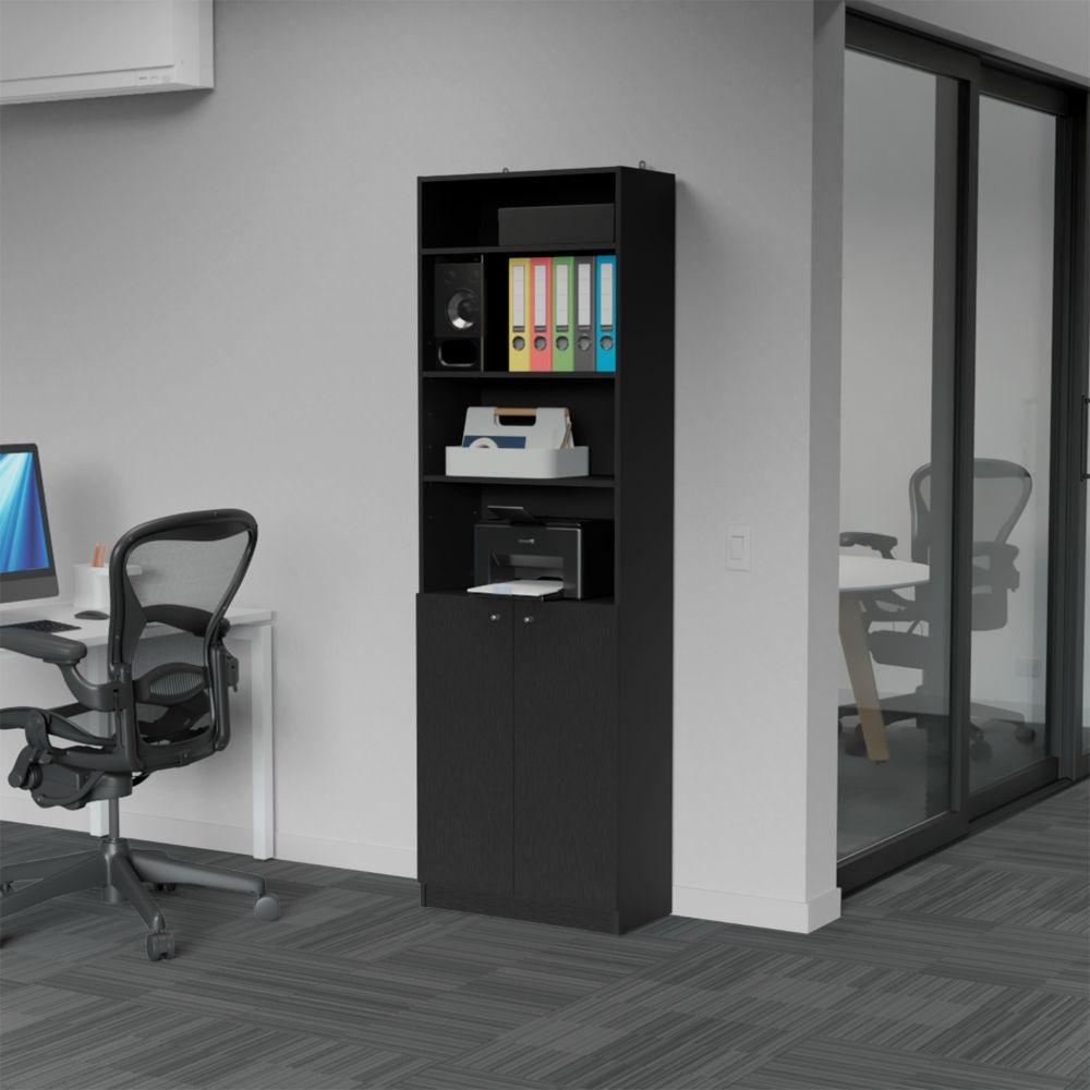 Biblioteca Home, Wengue, con Cinco Entrepaños y Dos Puertas Abatibles Incluye Complemento