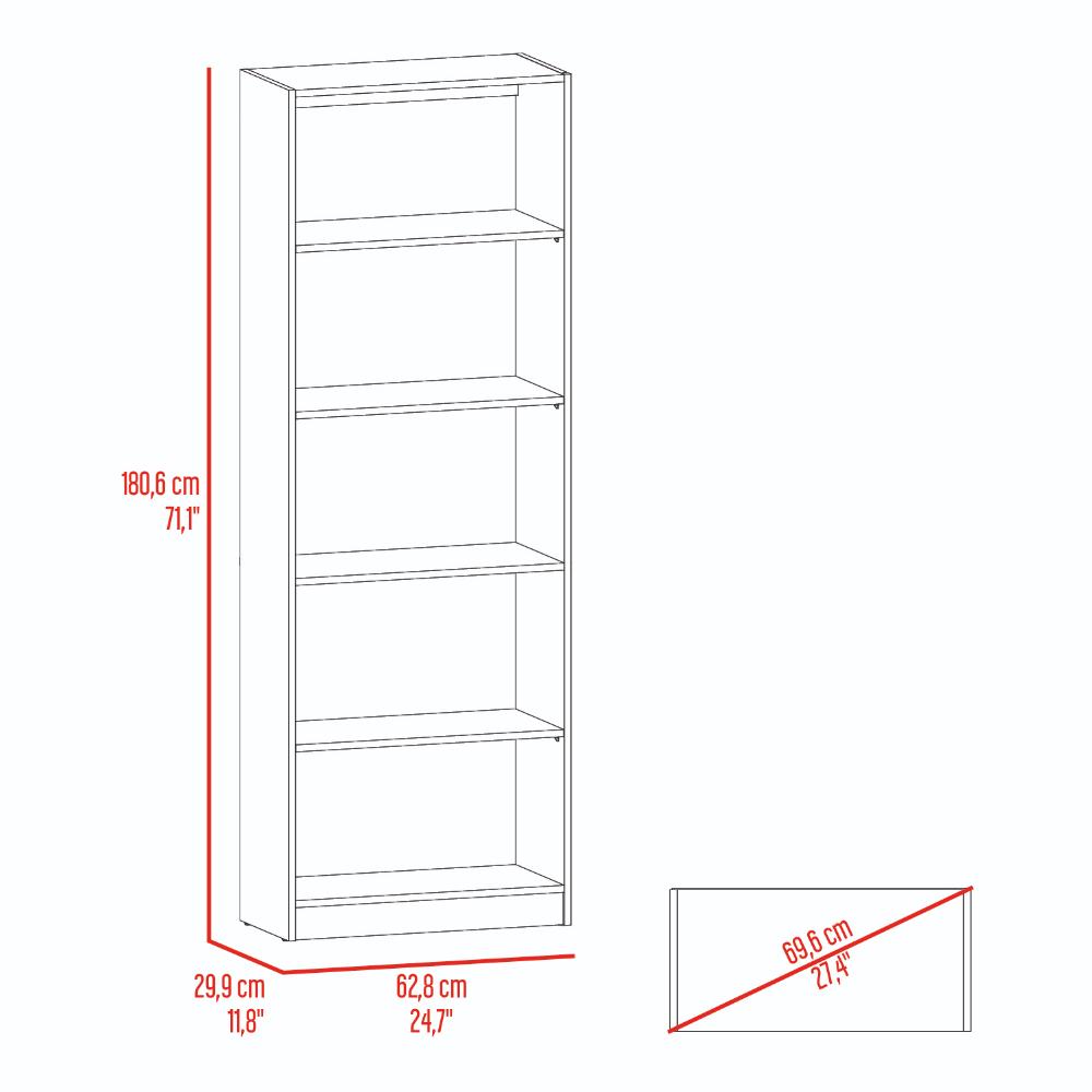 Biblioteca, con cinco entrepaños para ubicar libros y elementos decorativos.