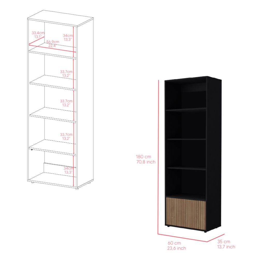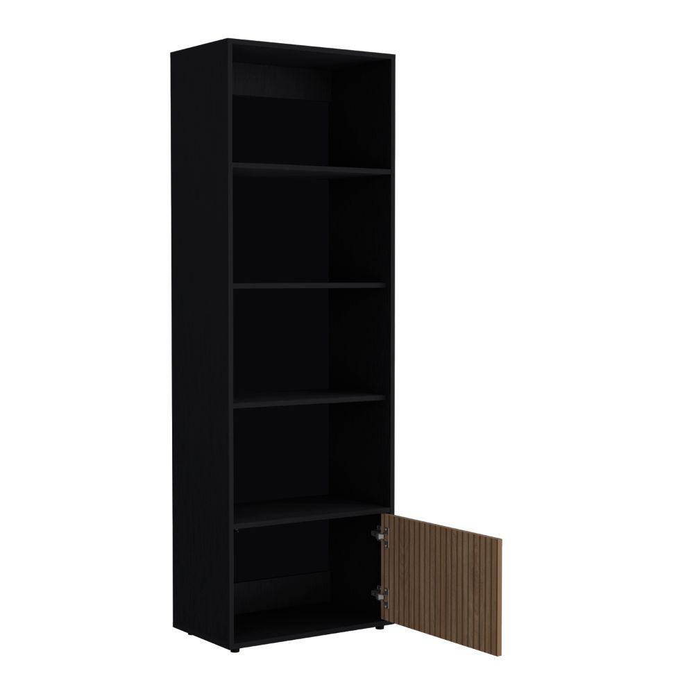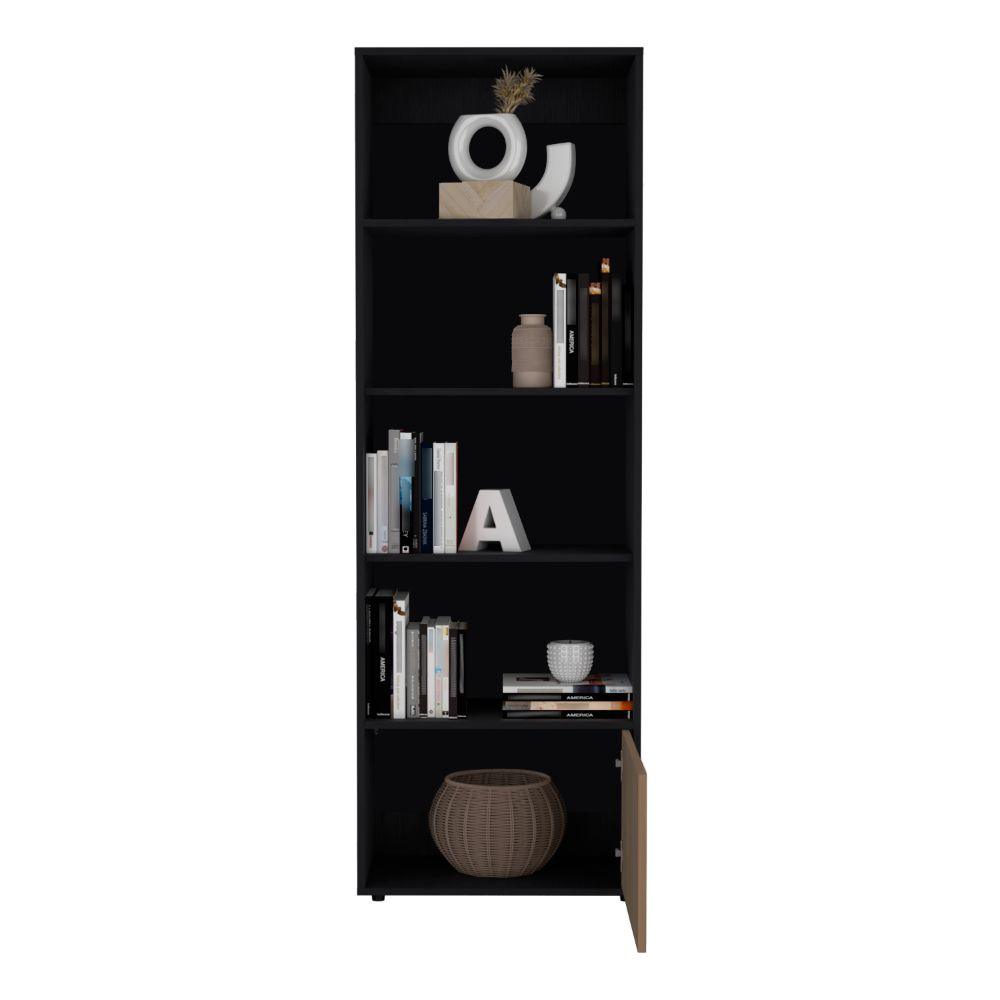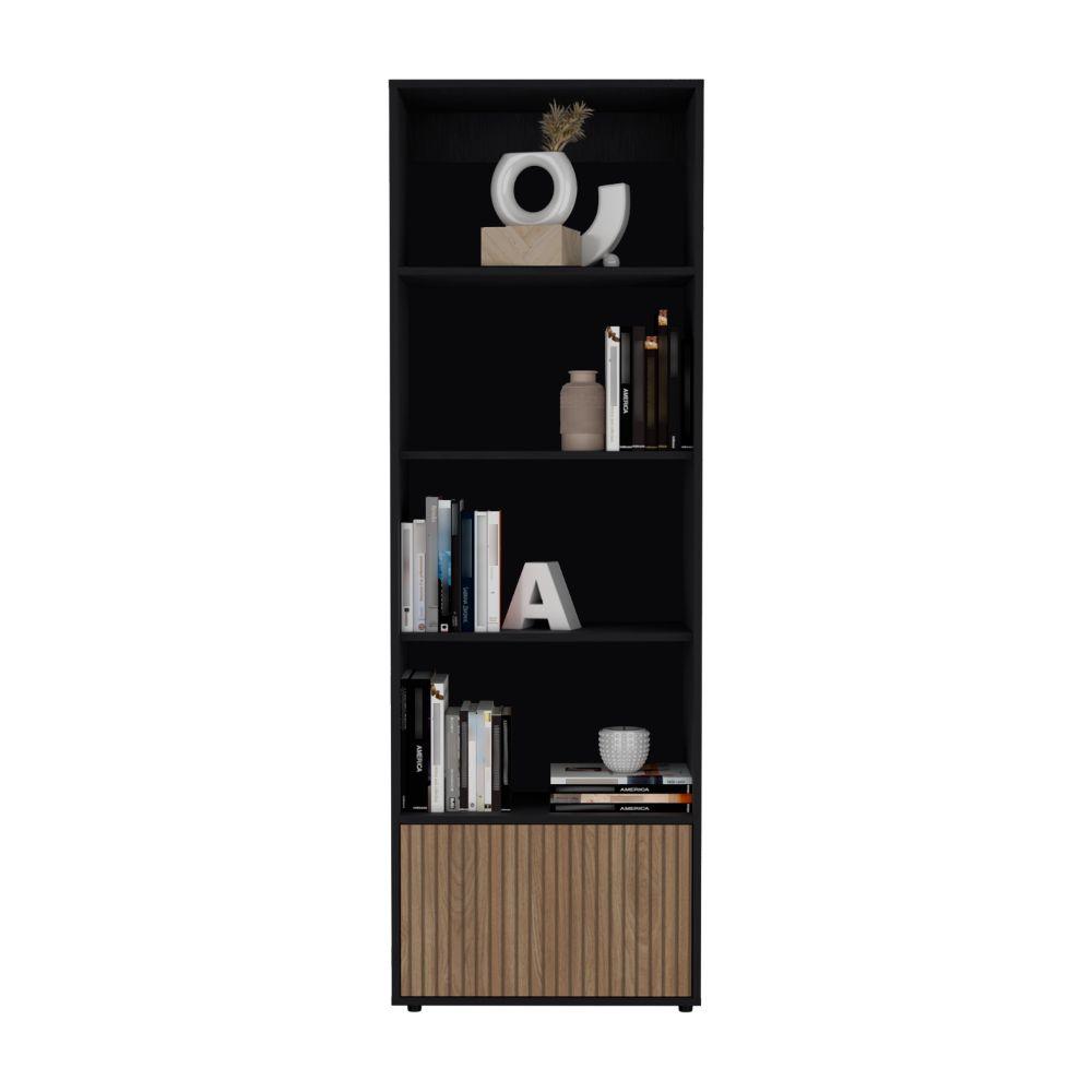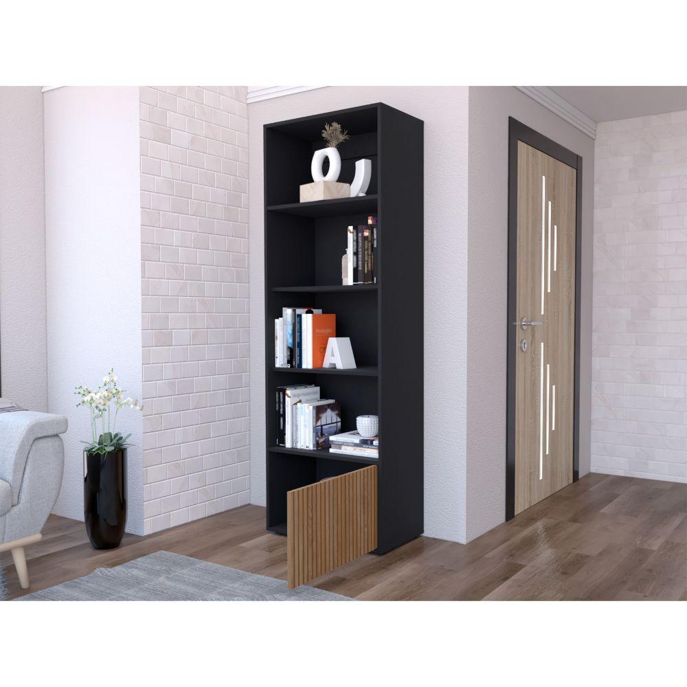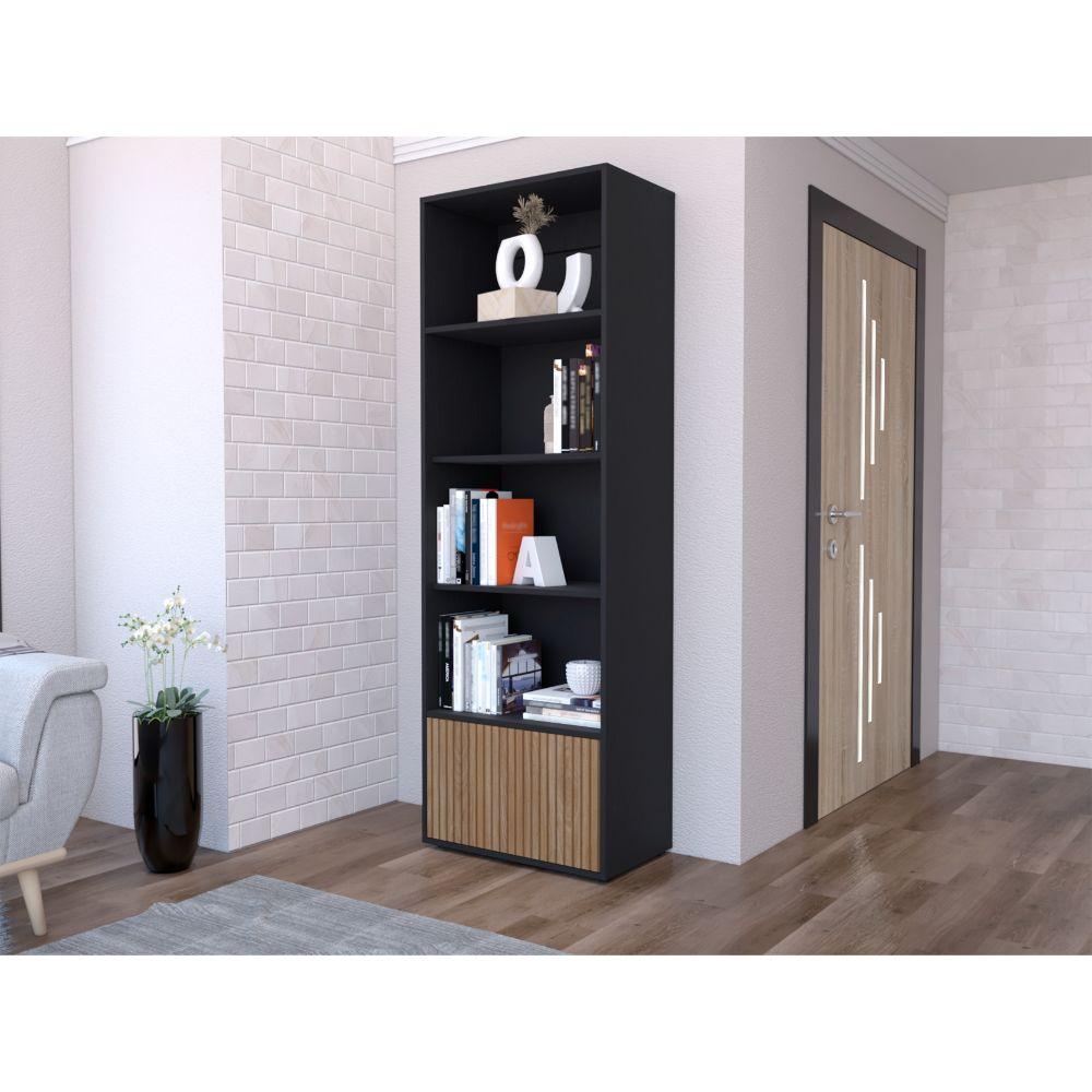 Biblioteca, con diseño simple y de fácil armado, superficies para ubicar libros y múltiples objetos decorativos.