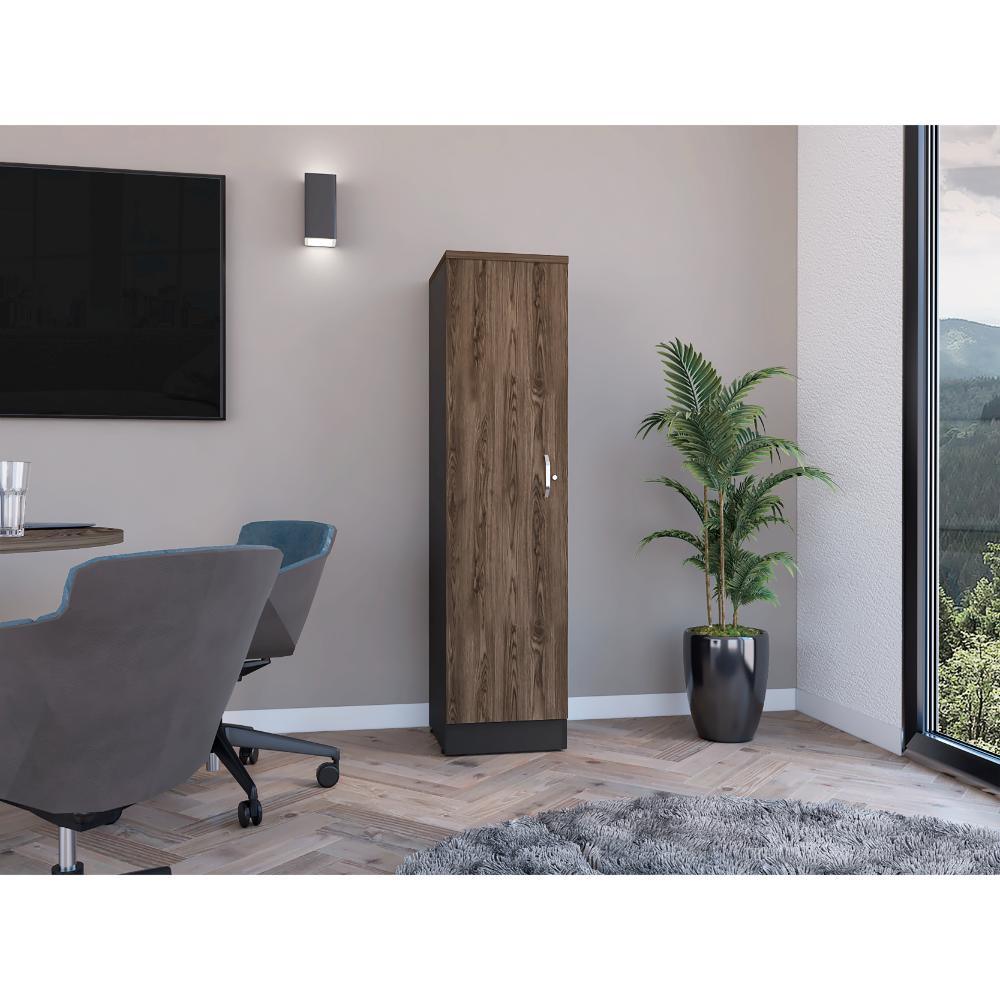 Biblioteca Tray, Chocolate y Wengue, con una puerta - incluye cerradura