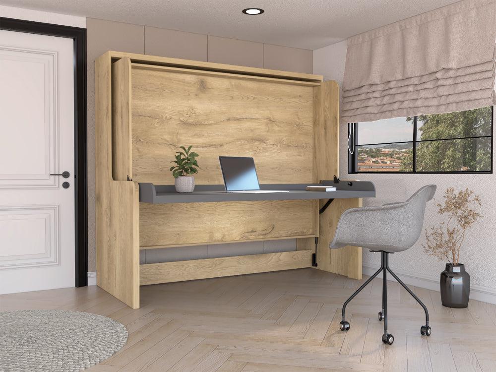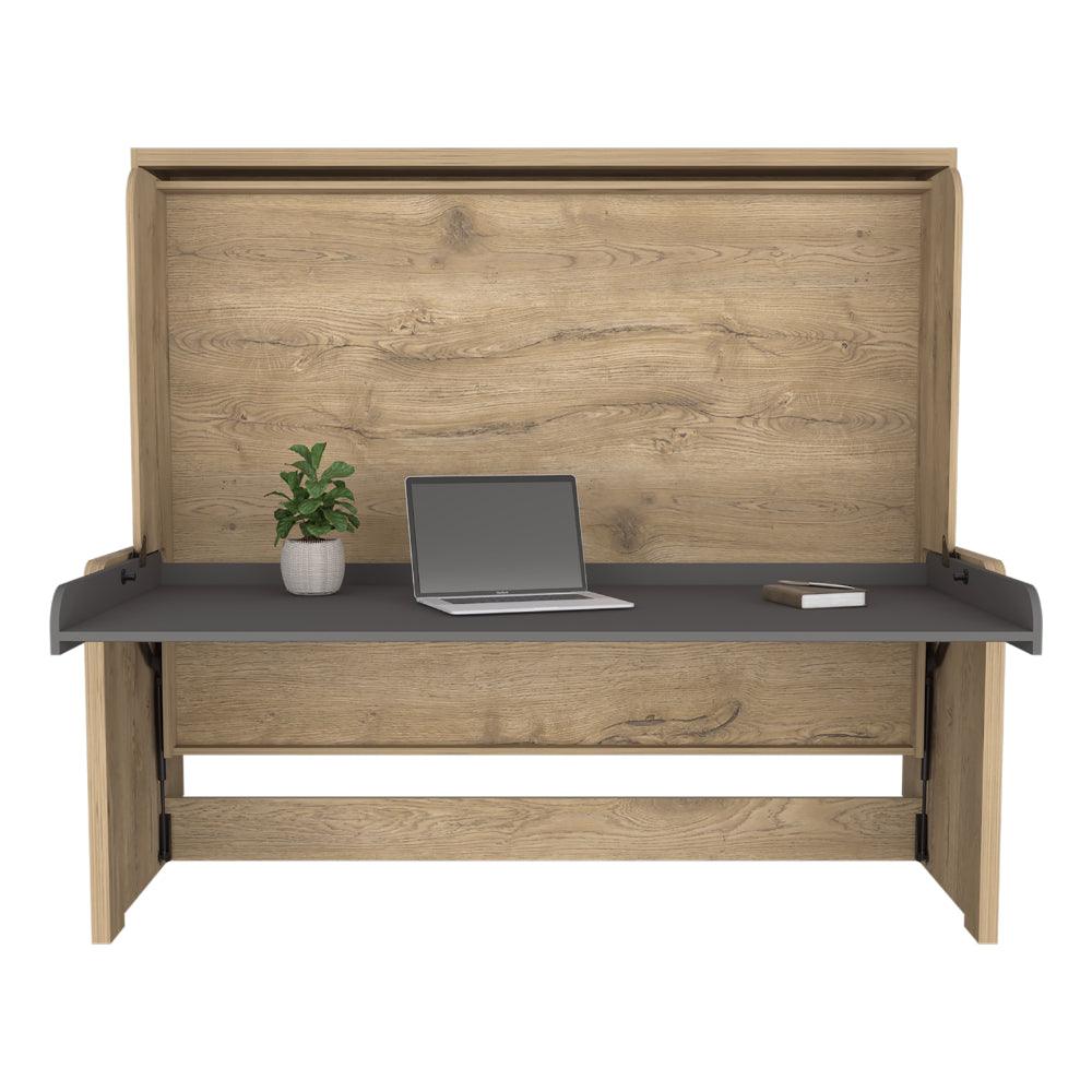 Cama Escritorio Multifuncional Kent, Macadamia y Plata Oscuro, diseñado para ahorrar espacio