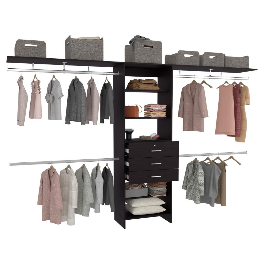 Closet Abierto Leda, Wengue, con cuatro tubos cromados ZF