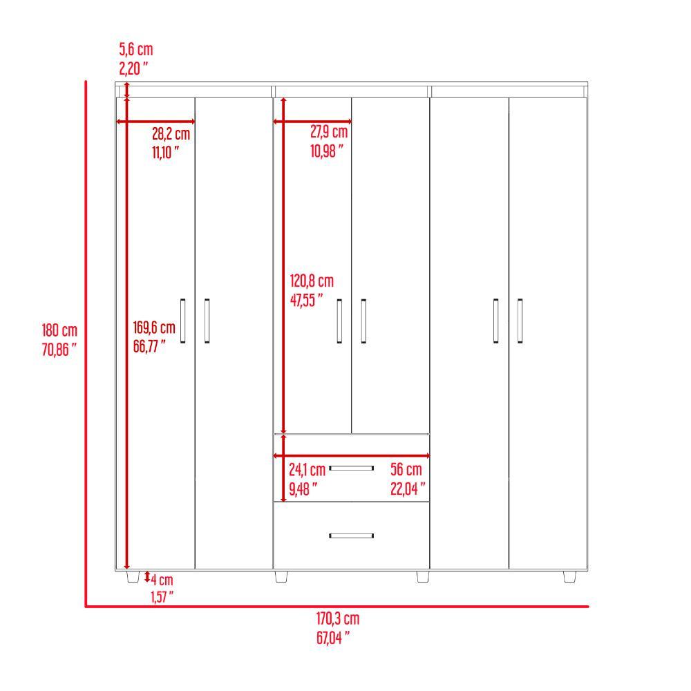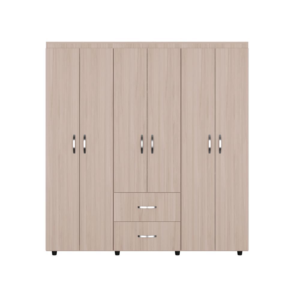Closet, con amplios espacios y entrepaños para organizar, 6 puertas abatibles, 3 tubos cromados, 2 cajones organizadores, y deslizadores de plástico para apoyo al piso.