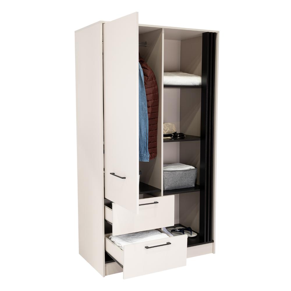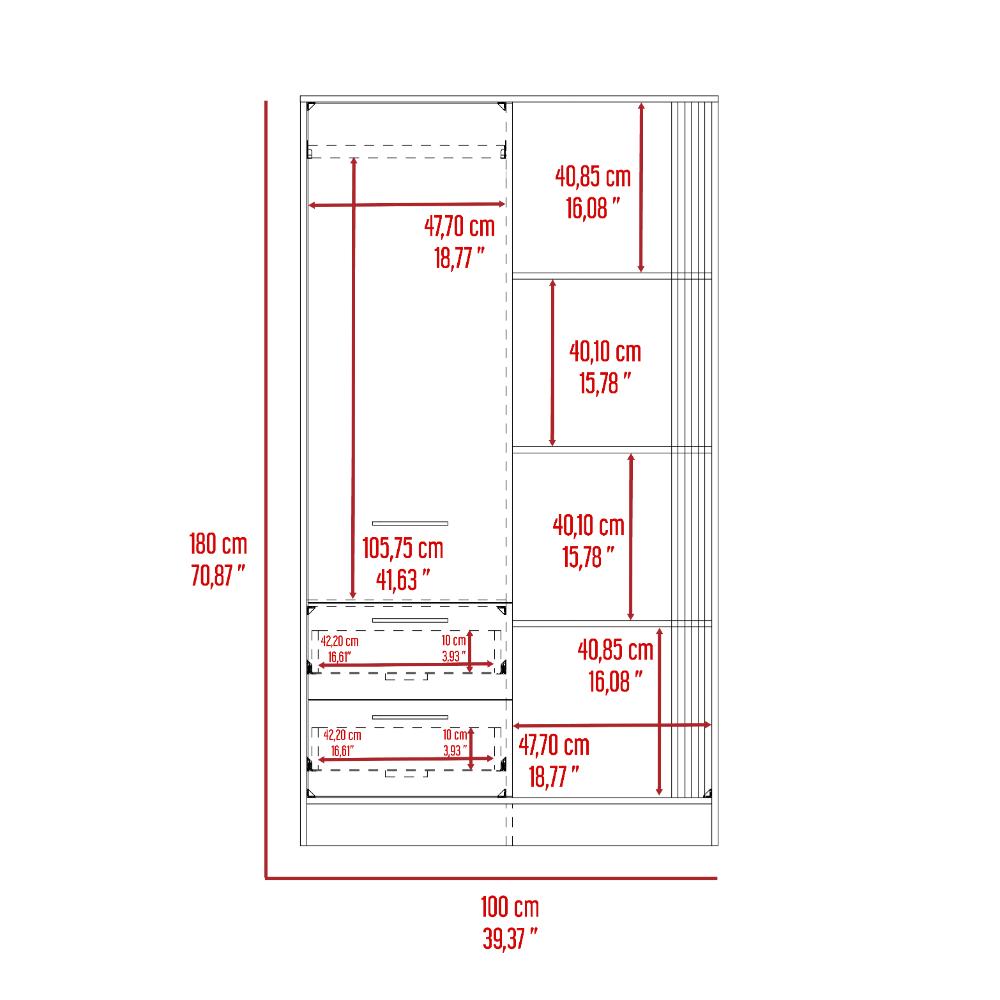 Closet, con diseño moderno, una puerta, dos cajones, amplios entrepaños visibles
