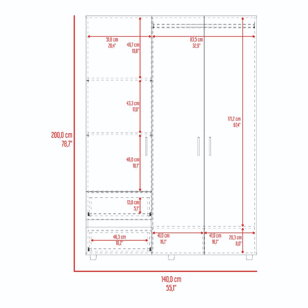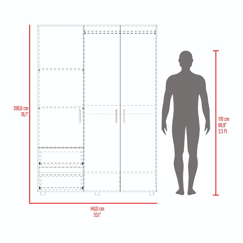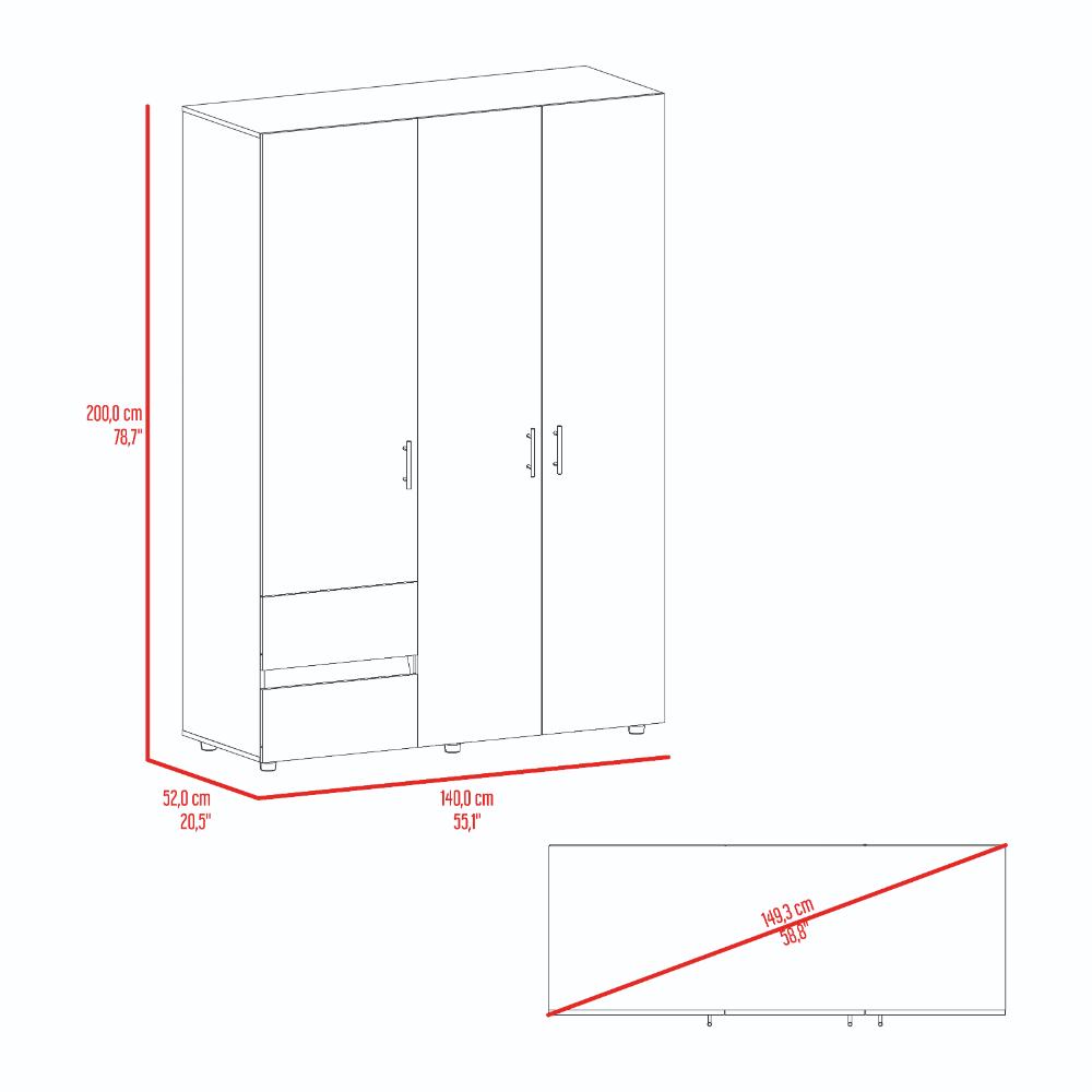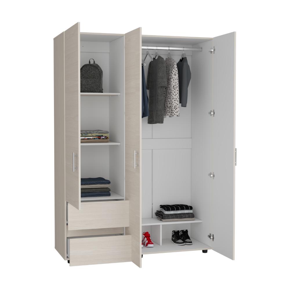 Closet Light 140, Nevado y Blanco, con tres puertas abatibles