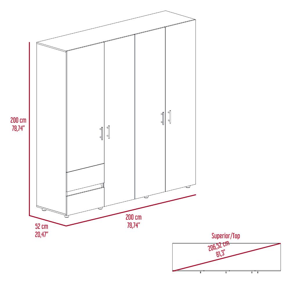 Closet Light 200, Nevado y Blanco, con amplios espacios de almacenamiento