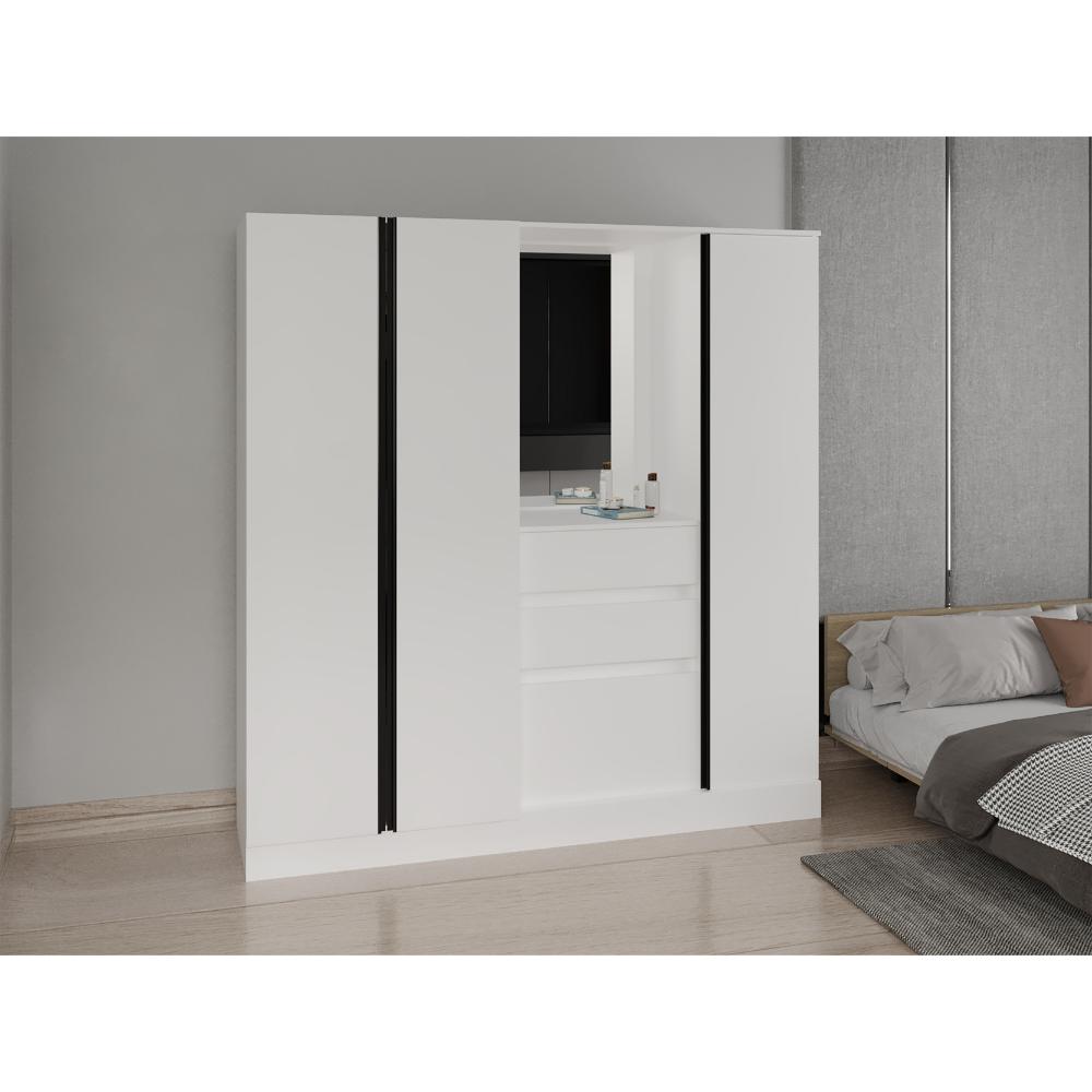 Elaborado en Madera aglomerada MDP, recubierta con láminas melamínicas de excelente calidad, en color Blanco Duqueza.