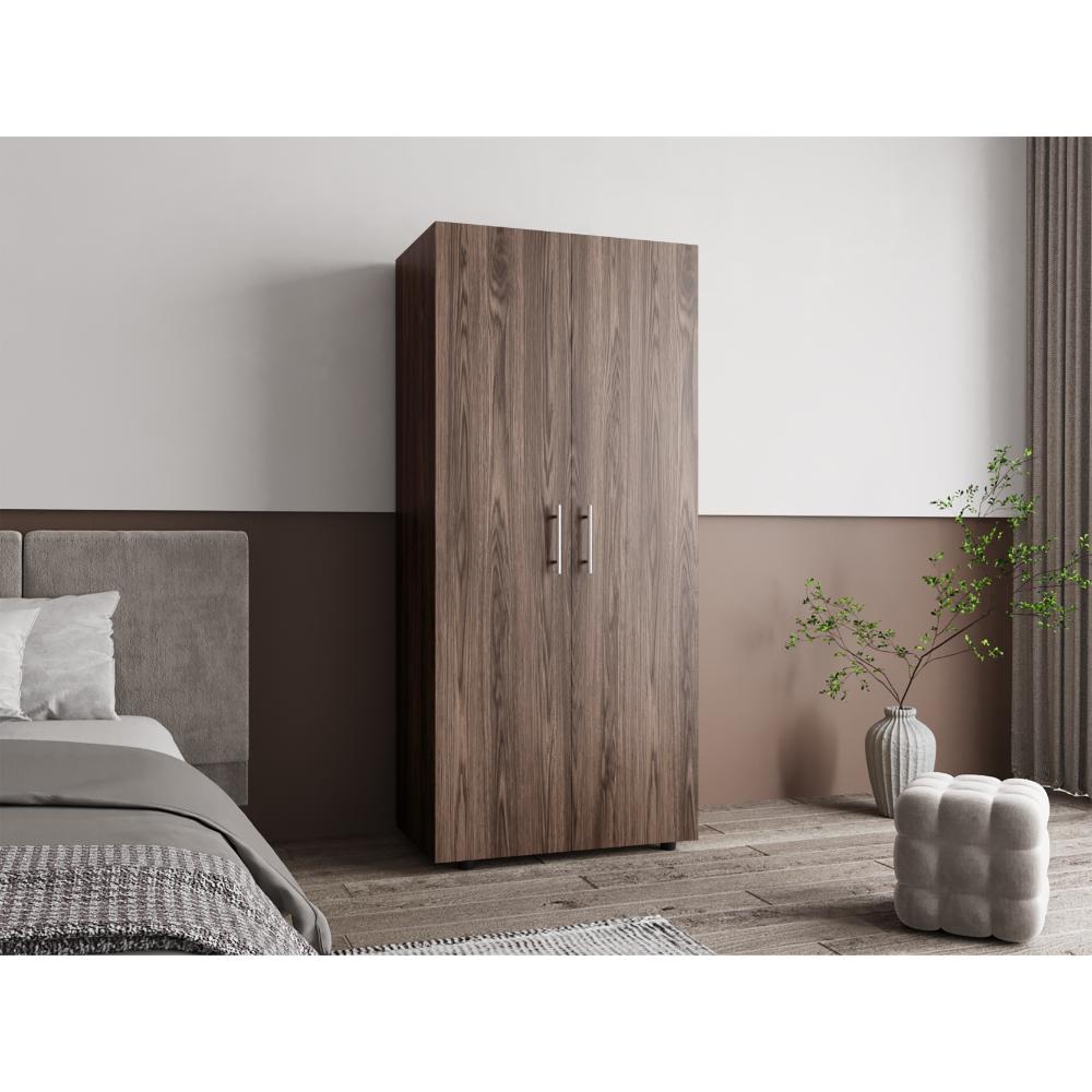 Closet Tera, Chocolate y Blanco Duqueza, Dos Puertas Abatibles y Dos Tubos Cromados