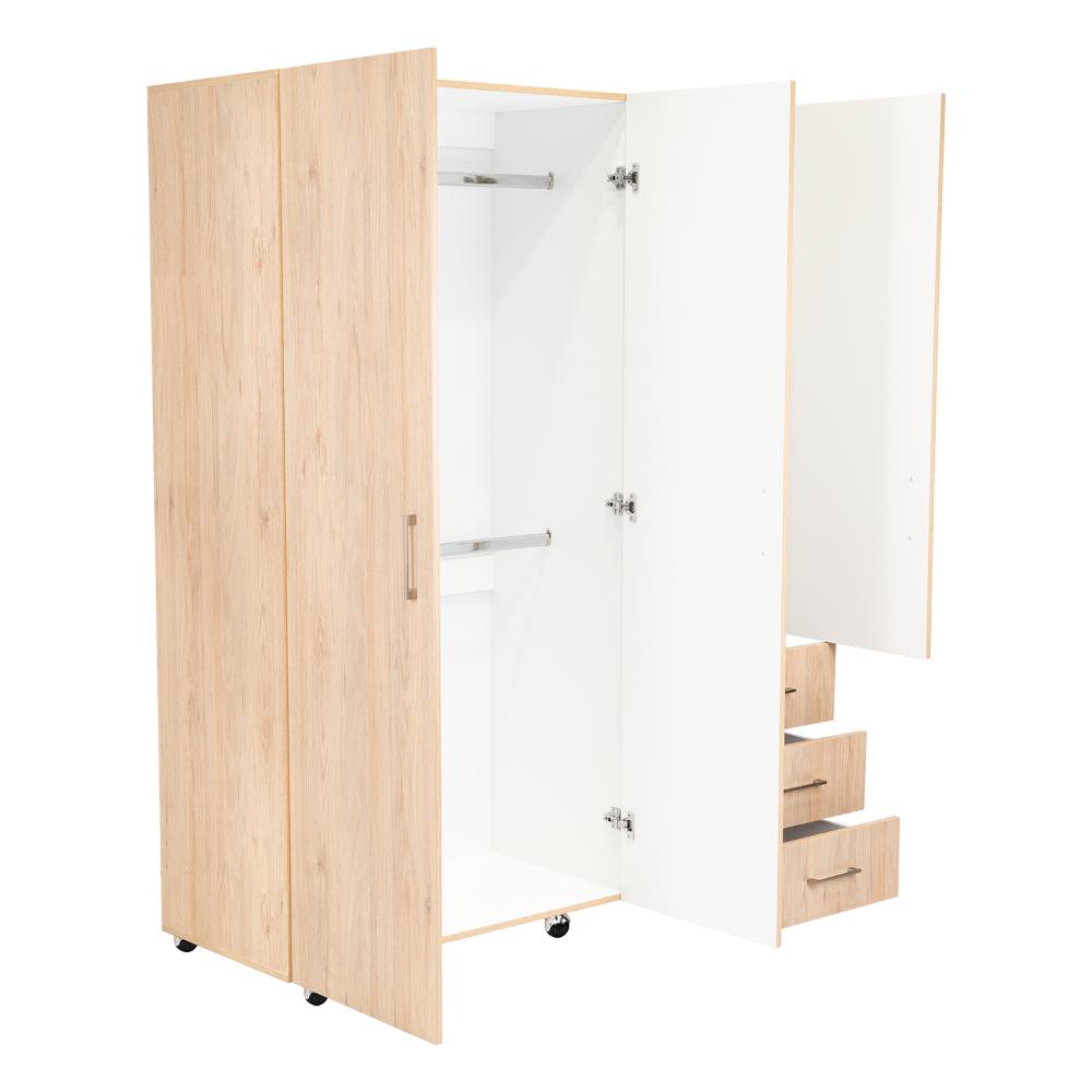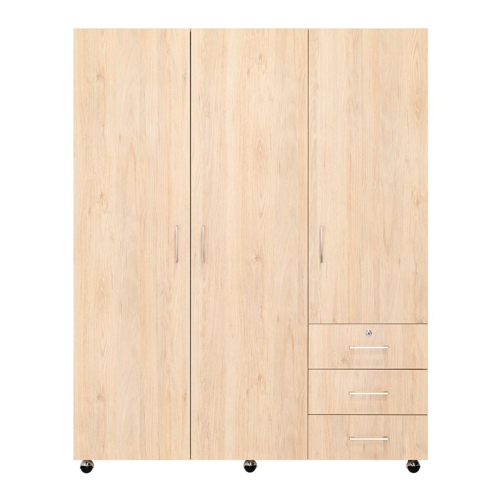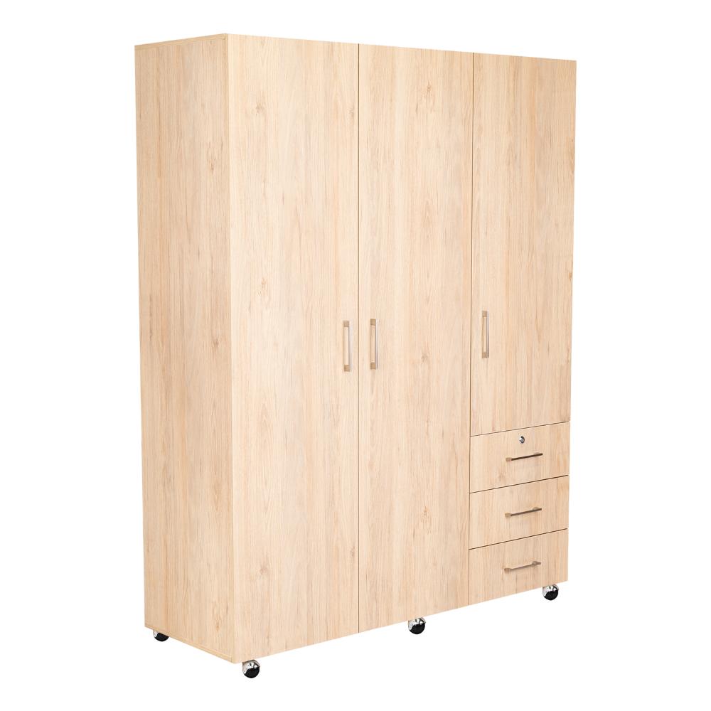 Closet, con 3 puertas abatibles, 3 cajones, uno con cerradura, 2 tubos, y amplios espacios para guardar ropa.