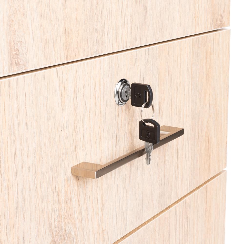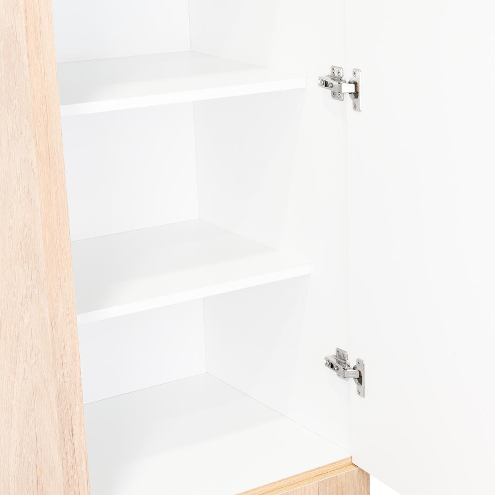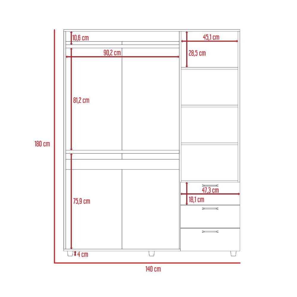 Elaborado en Madera aglomerada MDP, recubierta con láminas melamínicas de excelente calidad, en color Beige y Blanco.