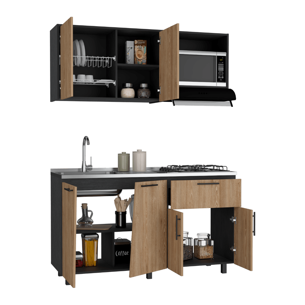 Elaborado en Madera aglomerada MDP, recubierta con láminas melamínicas de excelente calidad, en color Wengue y Miel.