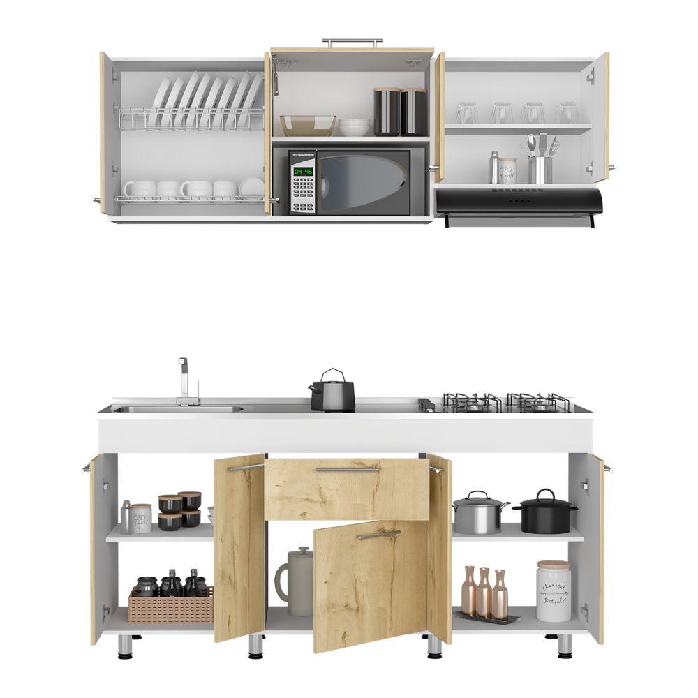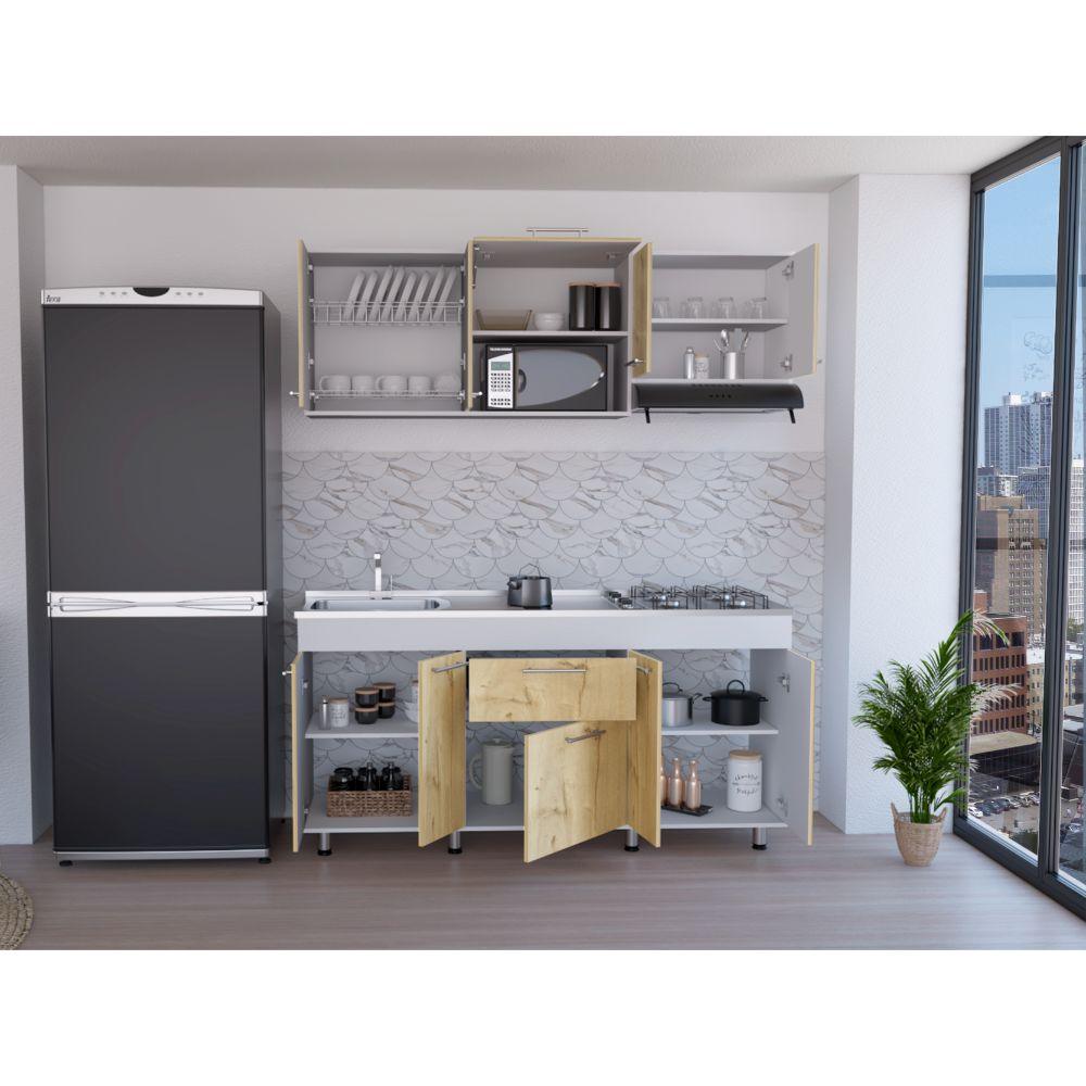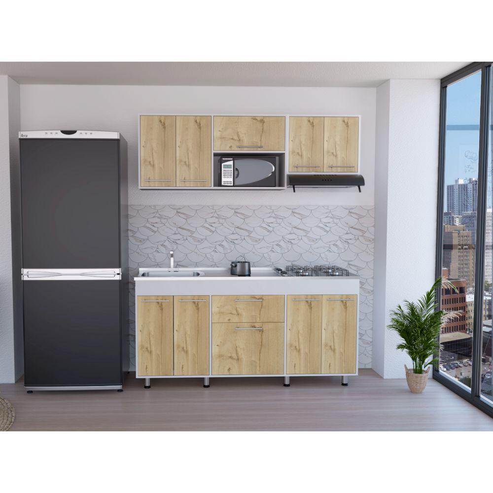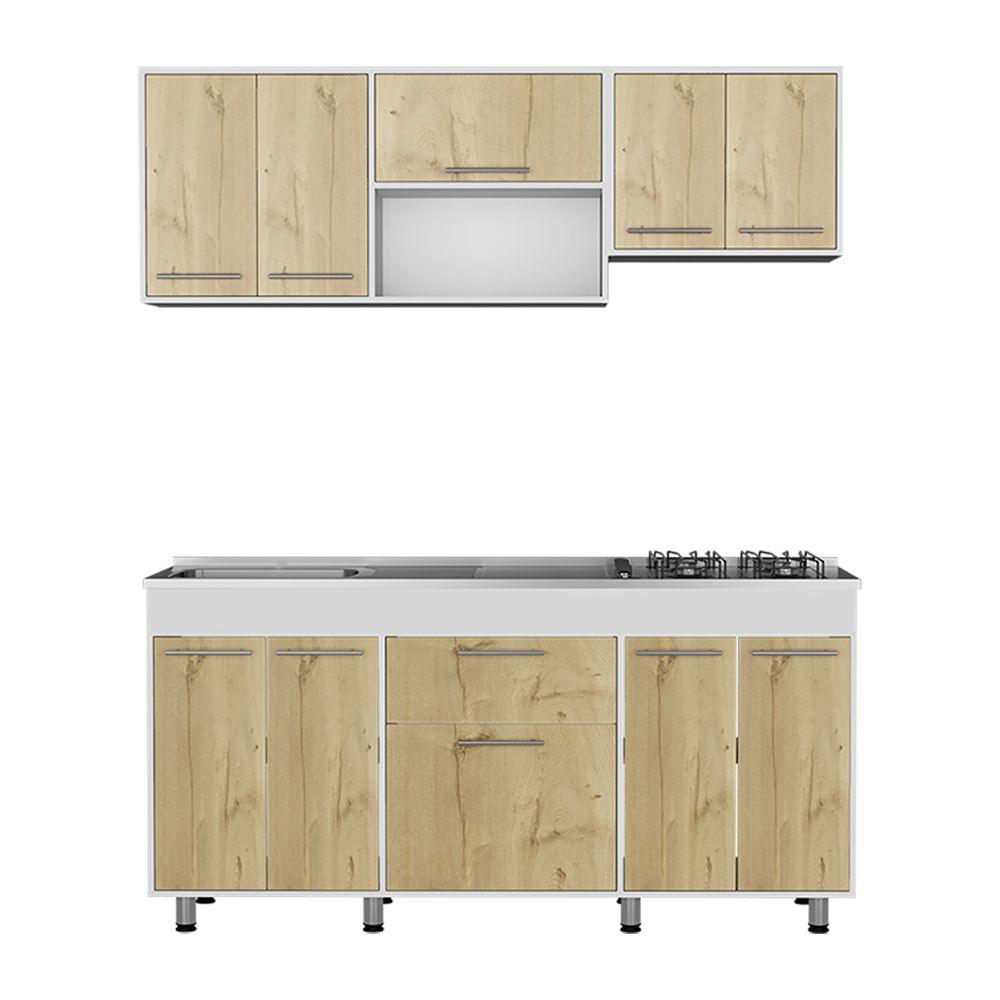 Cocina Integral Wester, Café Claro y Blanco, Incluye Mesón Izquierdo en Acero