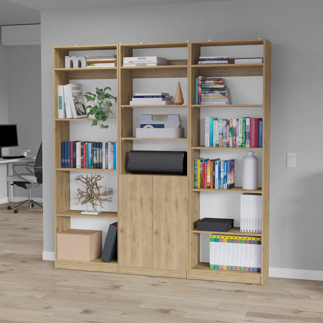 Combo de Bibliotecas Home, Macadamia, Incluye Tres Bibliotecas y Tres Complementos