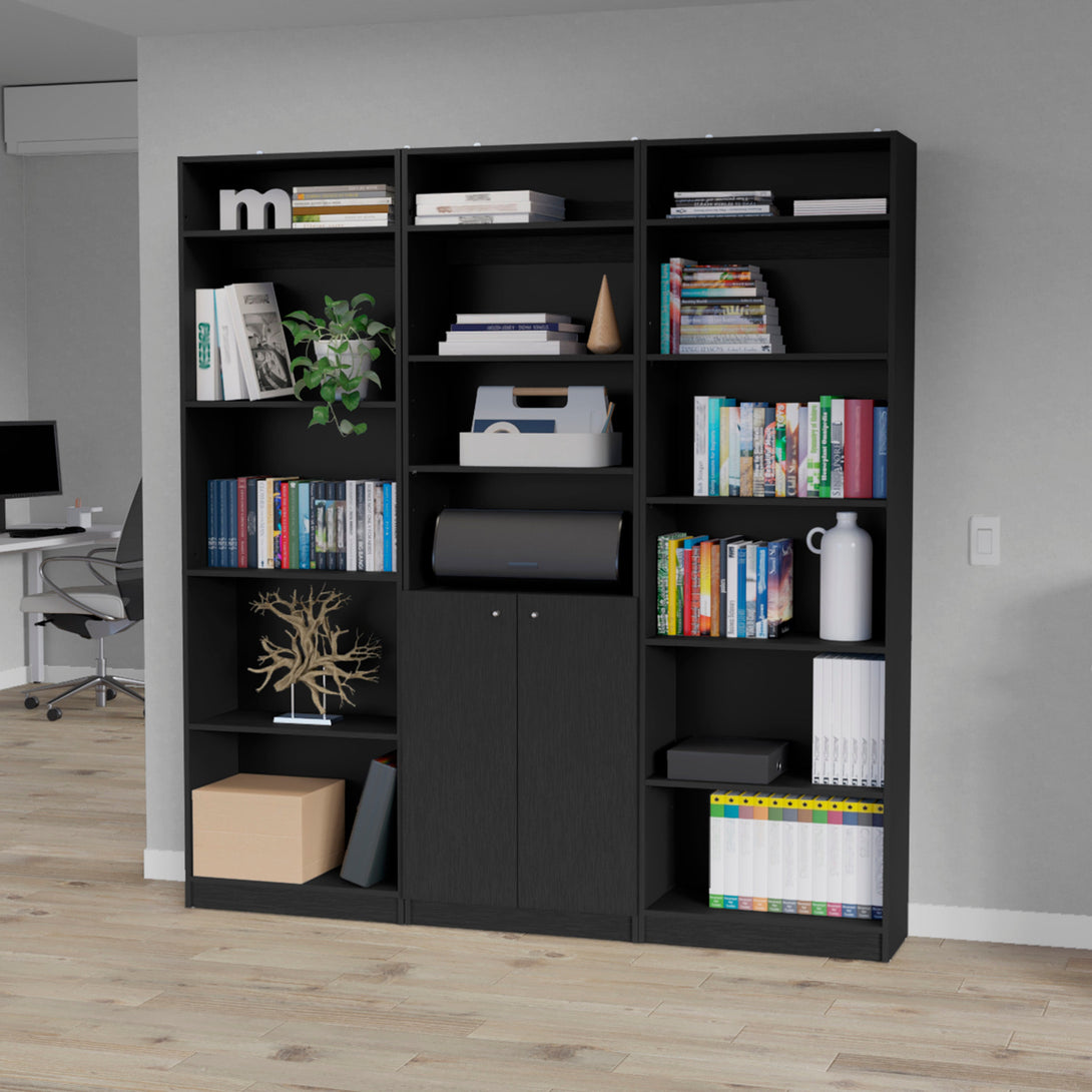 Combo de Bibliotecas Home, Wengue, Incluye Tres Bibliotecas y Tres Complementos