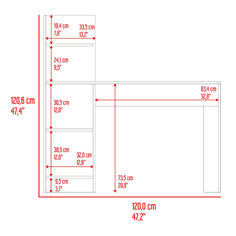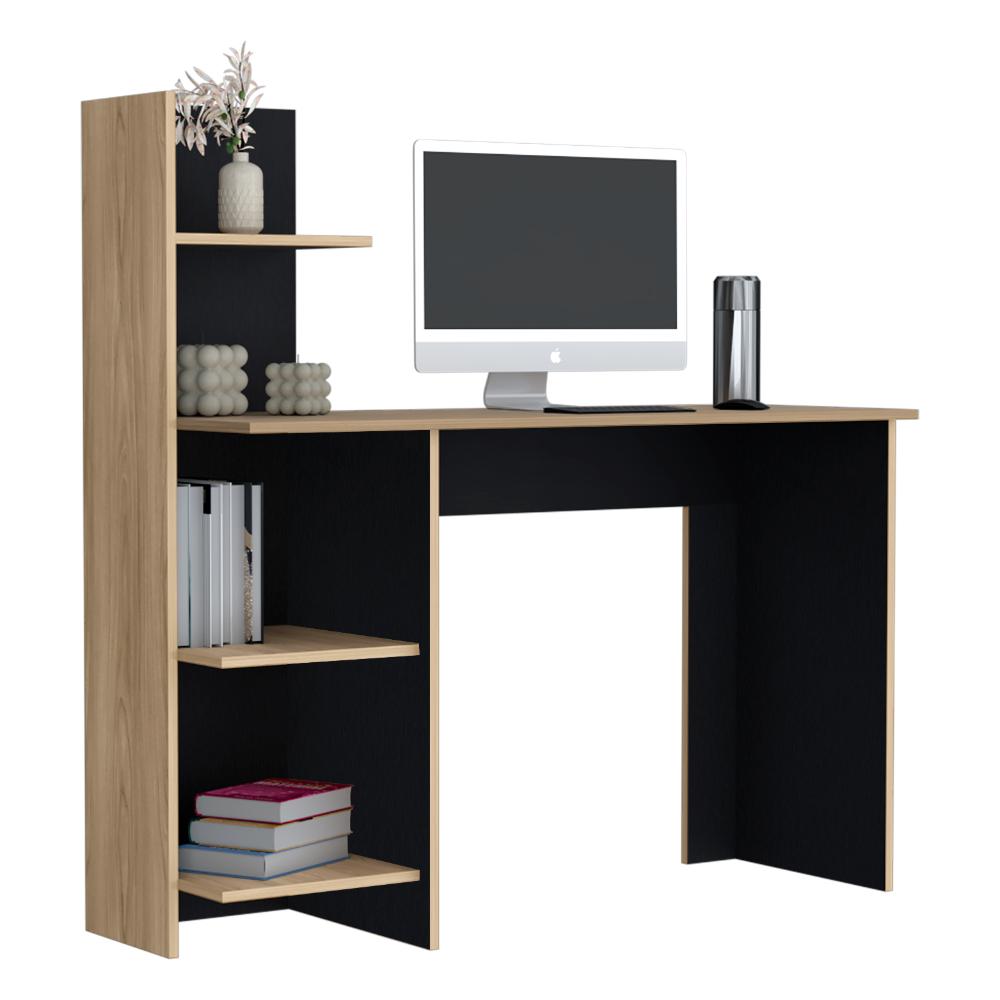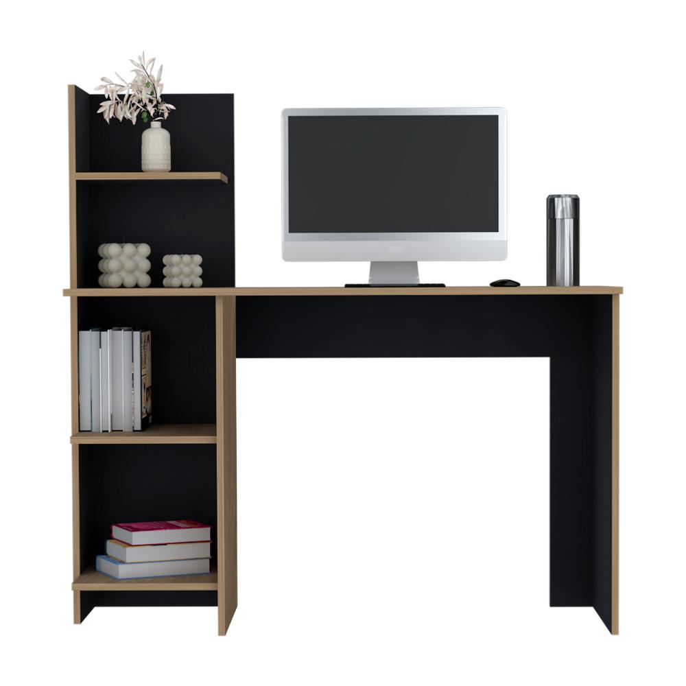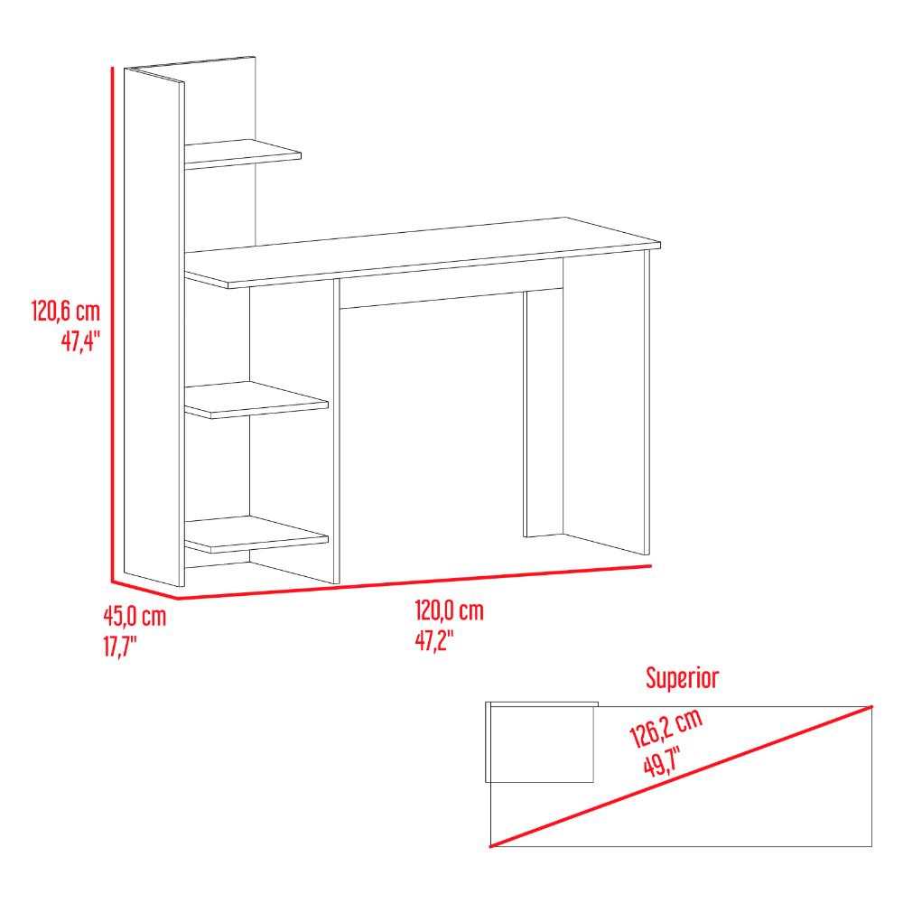 Escritorio, con amplia superficie de trabajo, 4 entrepaños para ubicar libros y/o elementos decorativos.