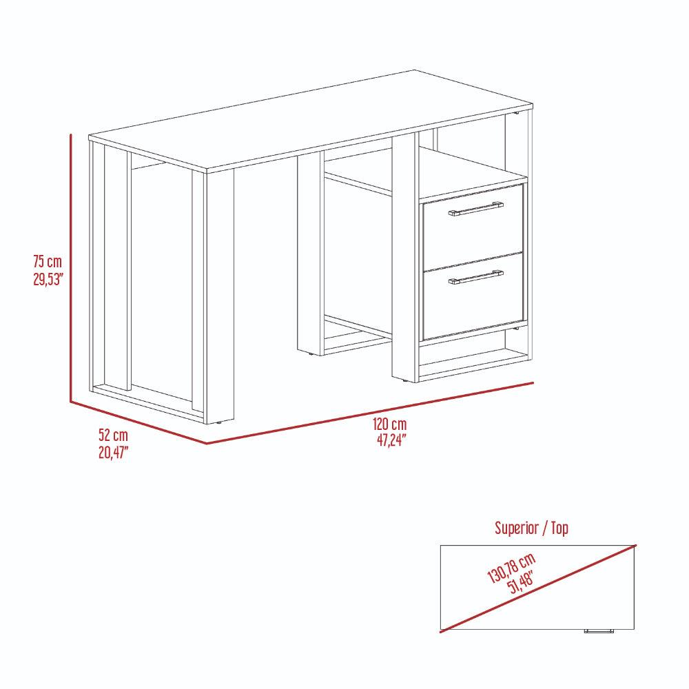 Escritorio, con amplia superficie de trabajo, dos cajones para ubicar objetos, diseño moderno.
