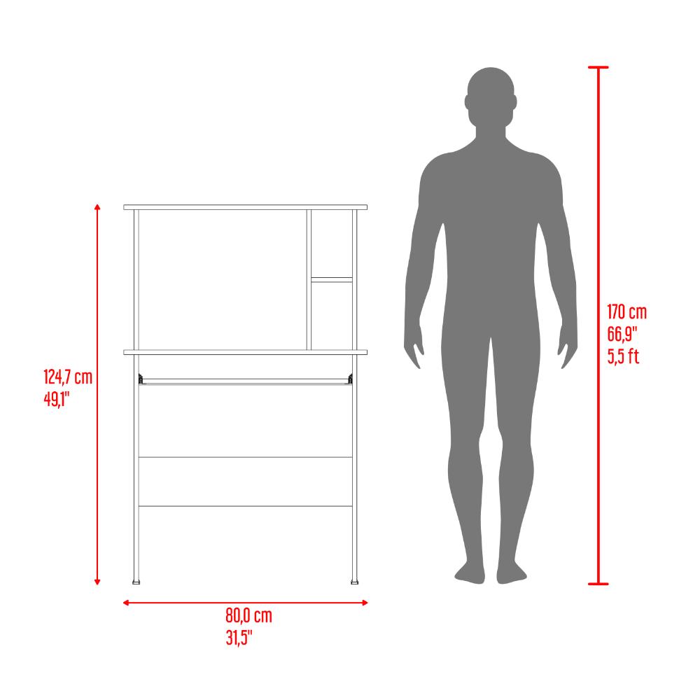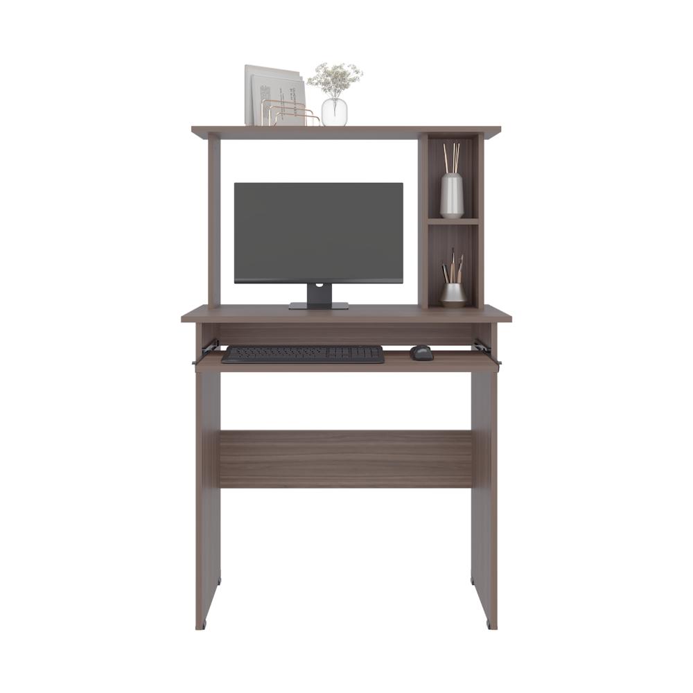 Escritorio, con amplio espacio para computador, entrepaños para colocar libros u objetos, badeja movil para teclado, es de facil instalación