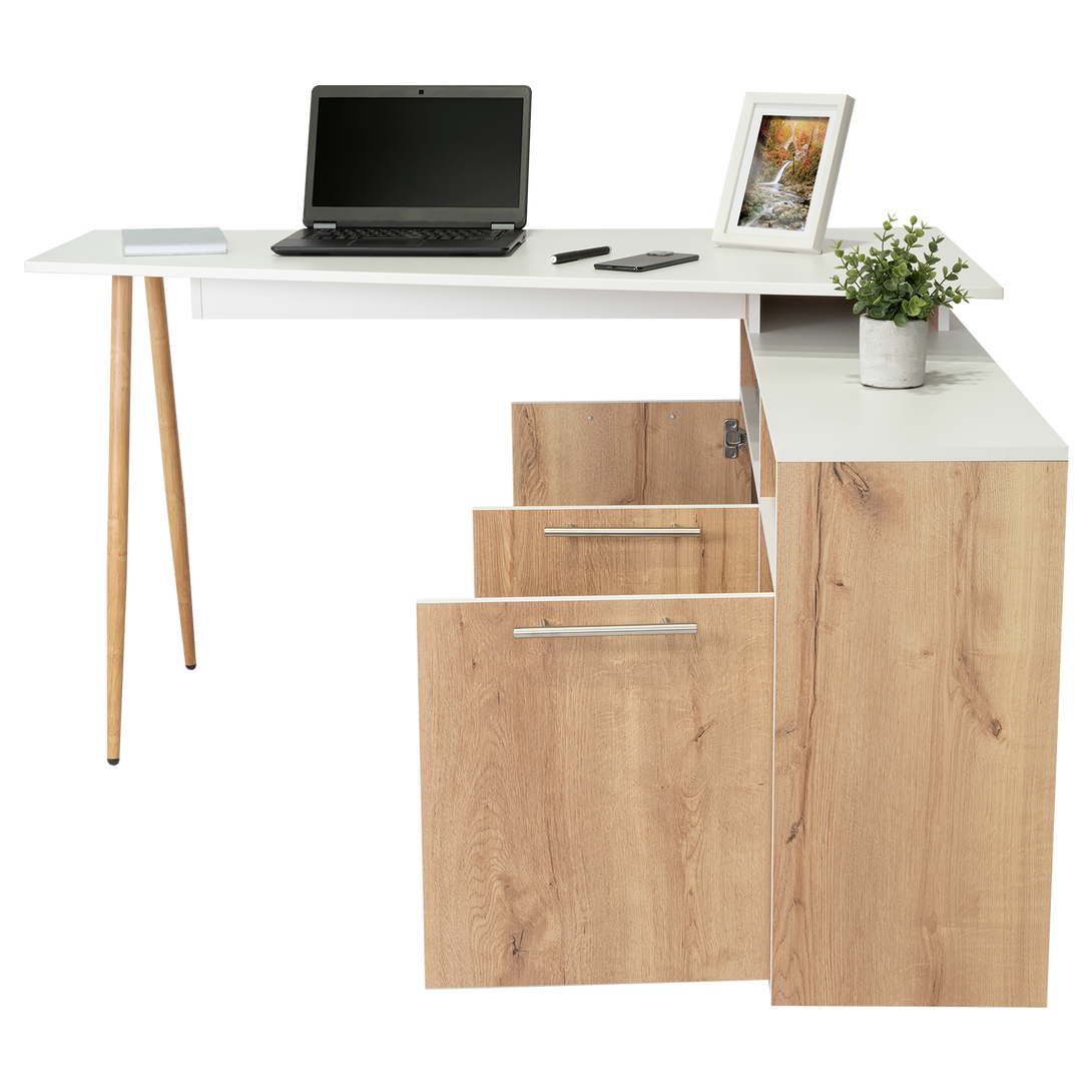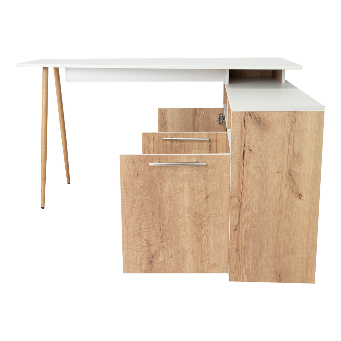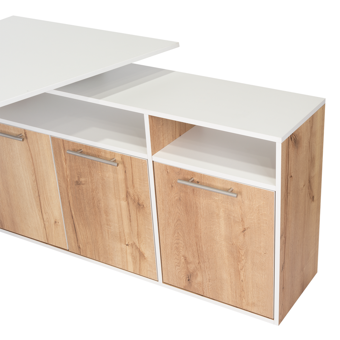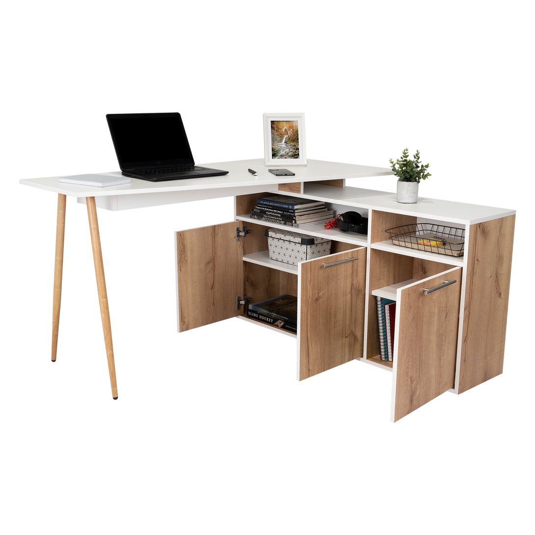 Escritorio En L Singapur, Café Claro y Blanco, con Tres Puertas Batientes