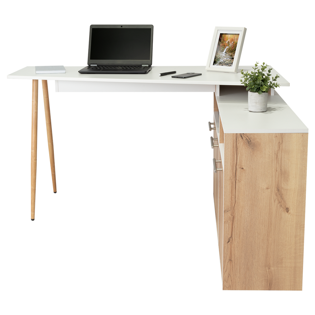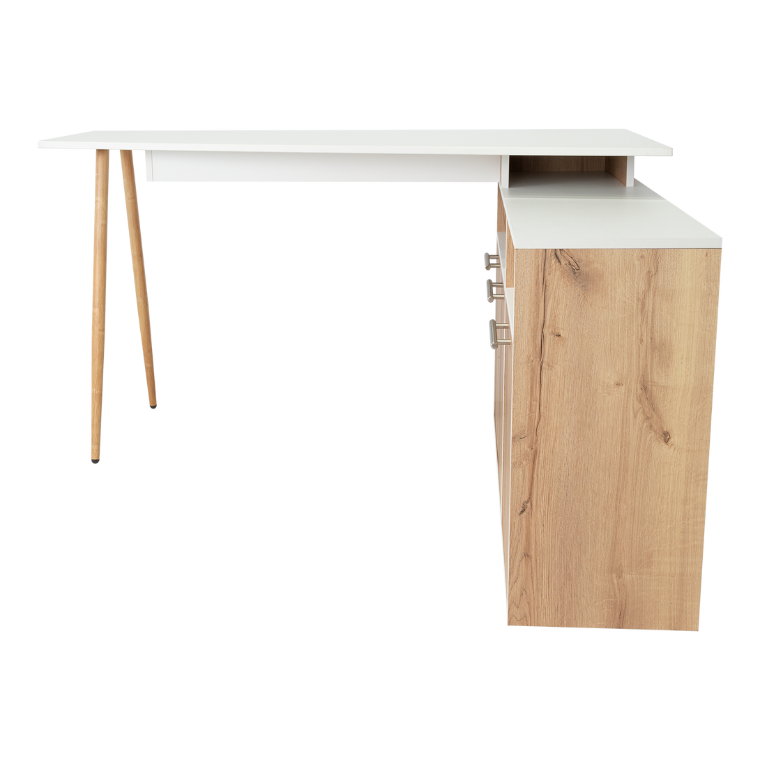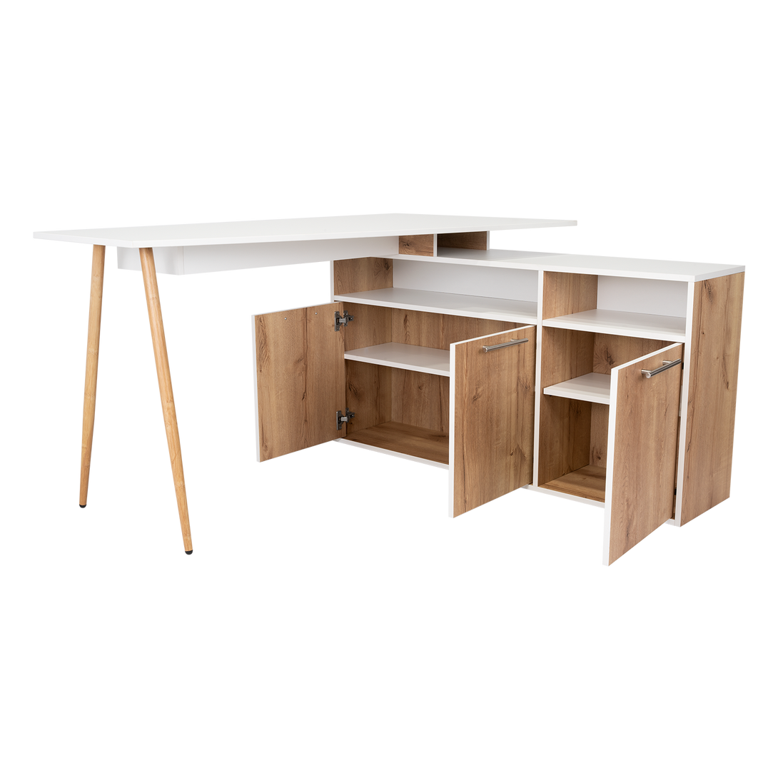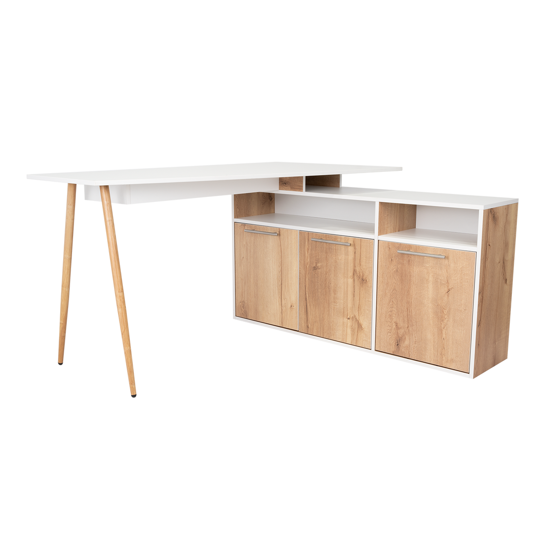 Escritorio En L Singapur, Café Claro y Blanco, con Tres Puertas Batientes