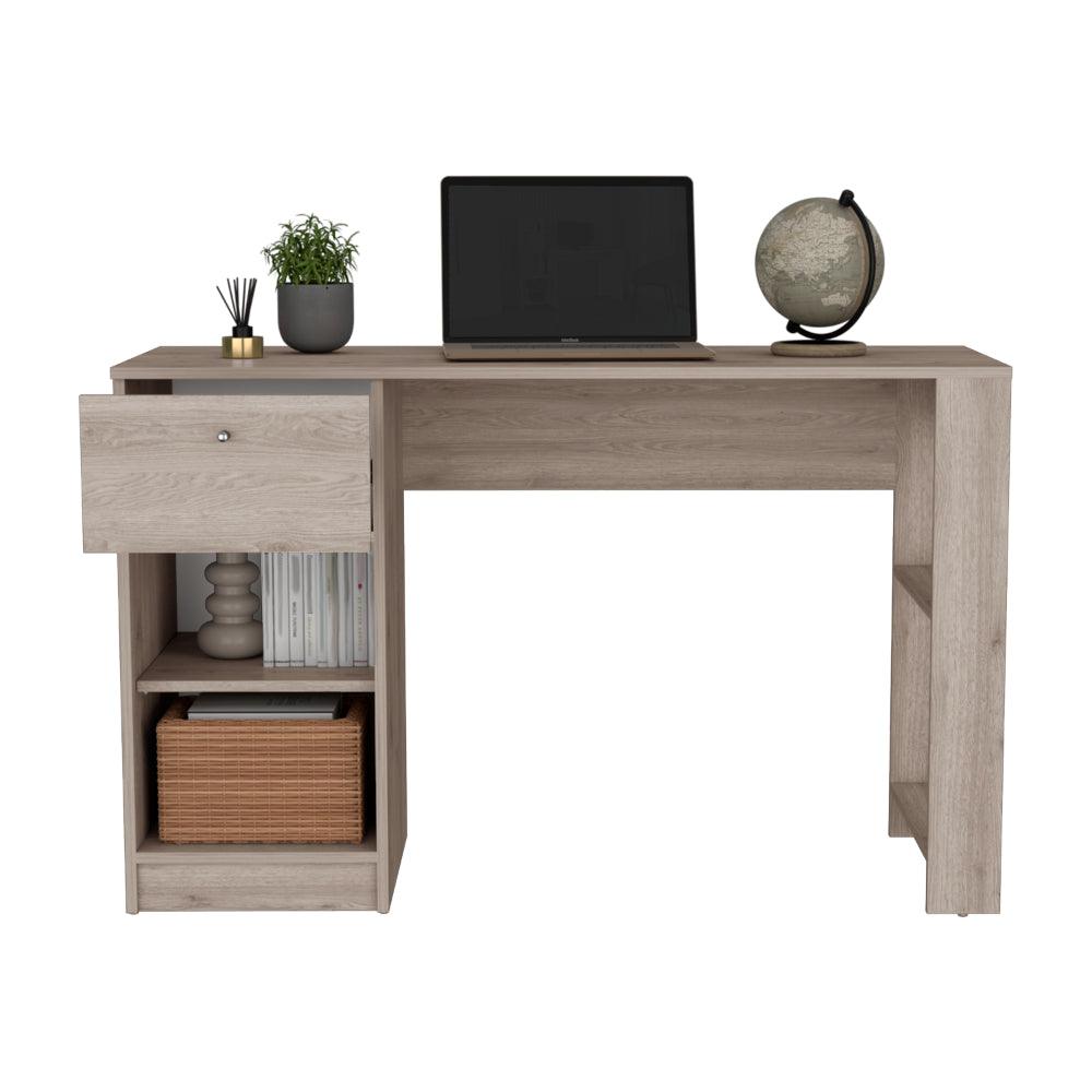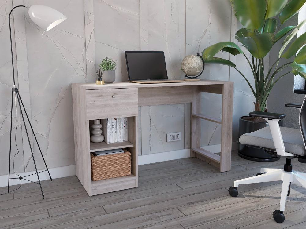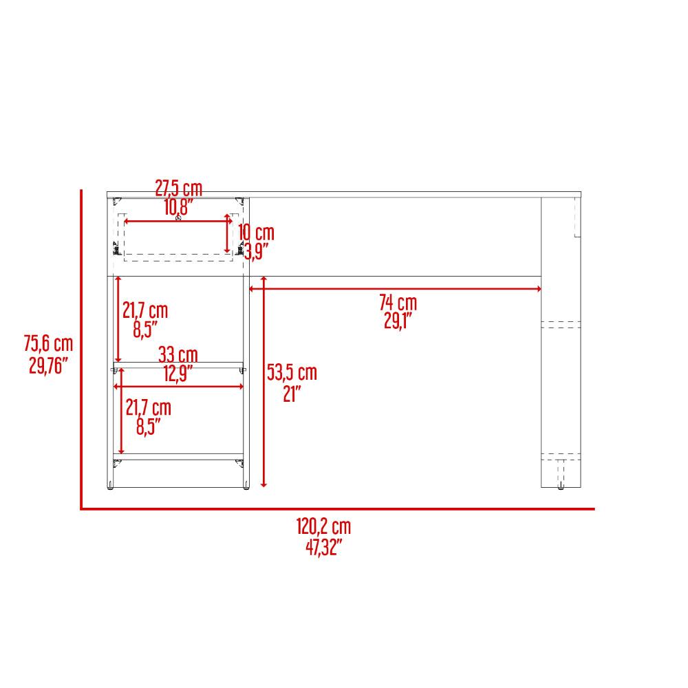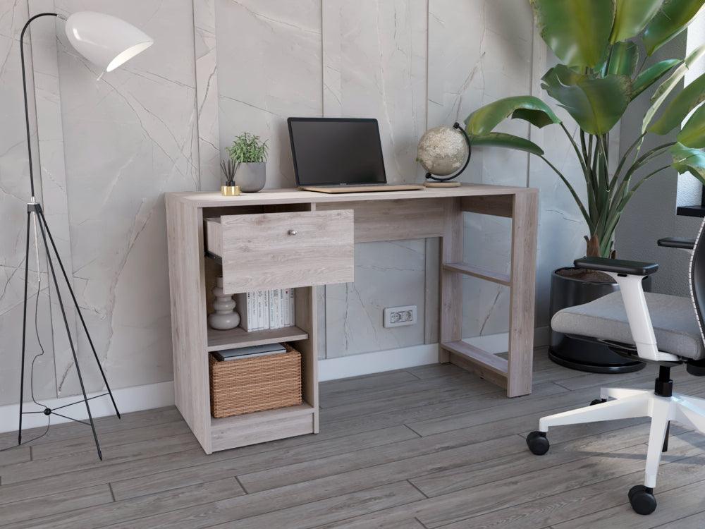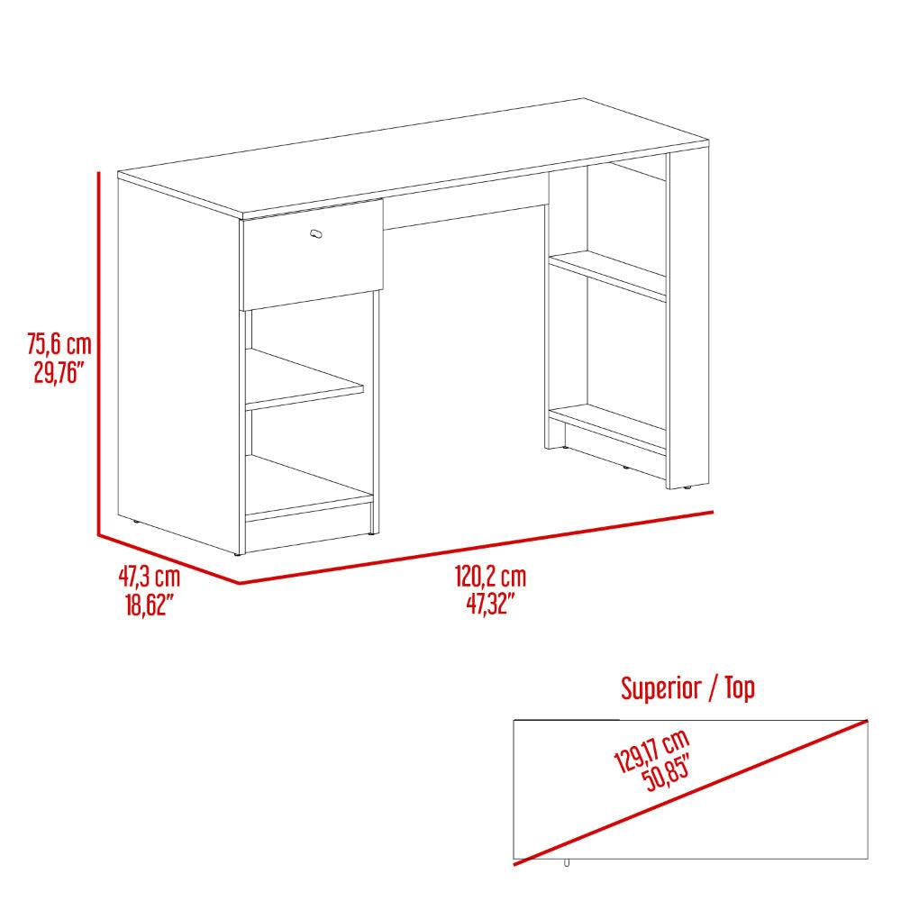 Escritorio, con compartimientos para objetos de estudio o decorativos, un cajón, fácil armado.