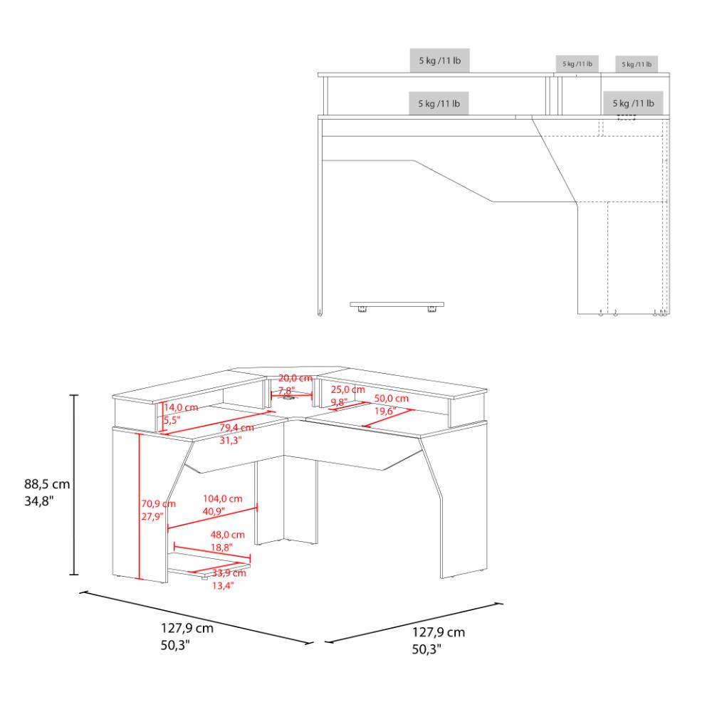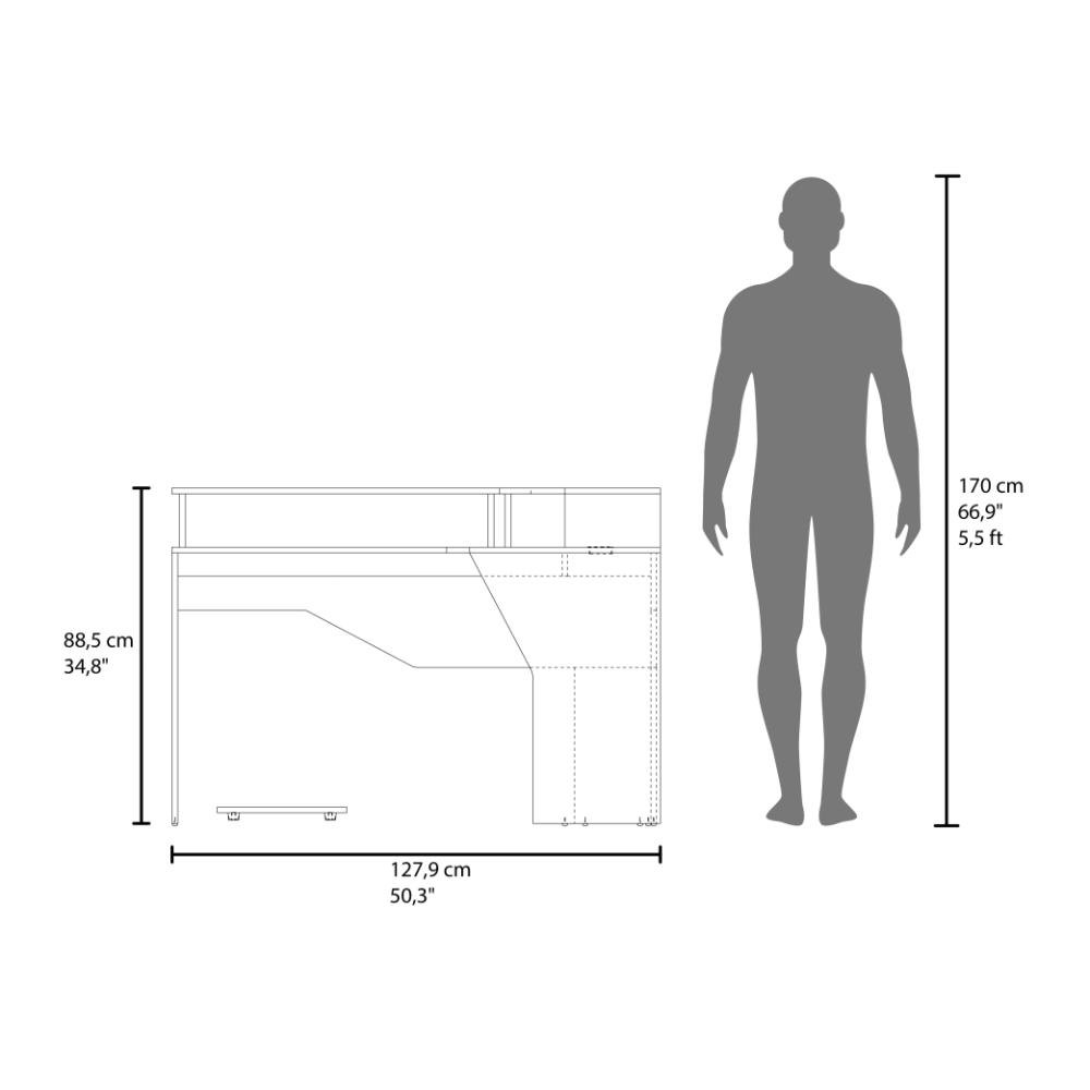 Escritorio Gamer, con espacio para diferentes equipos, borde Azul y diseño moderno.