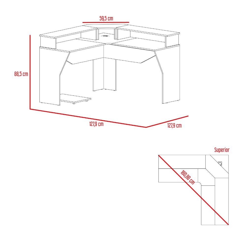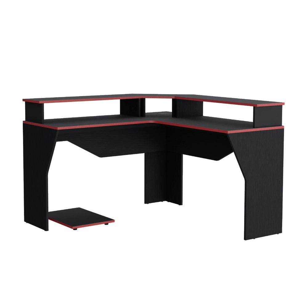 Escritorio Gamer, con espacio para diferentes equipos, borde Rojo y diseño moderno.