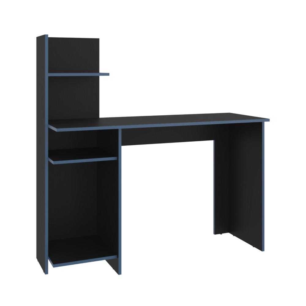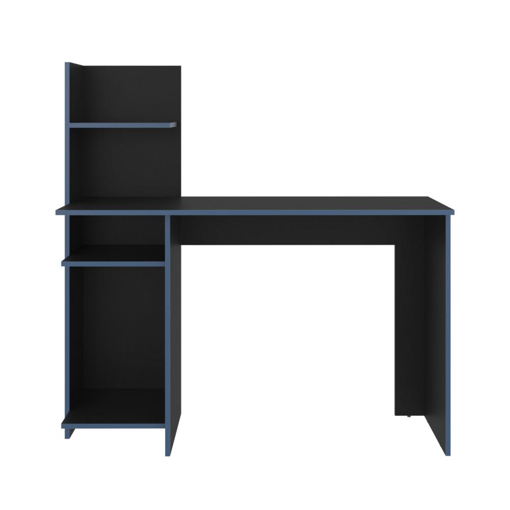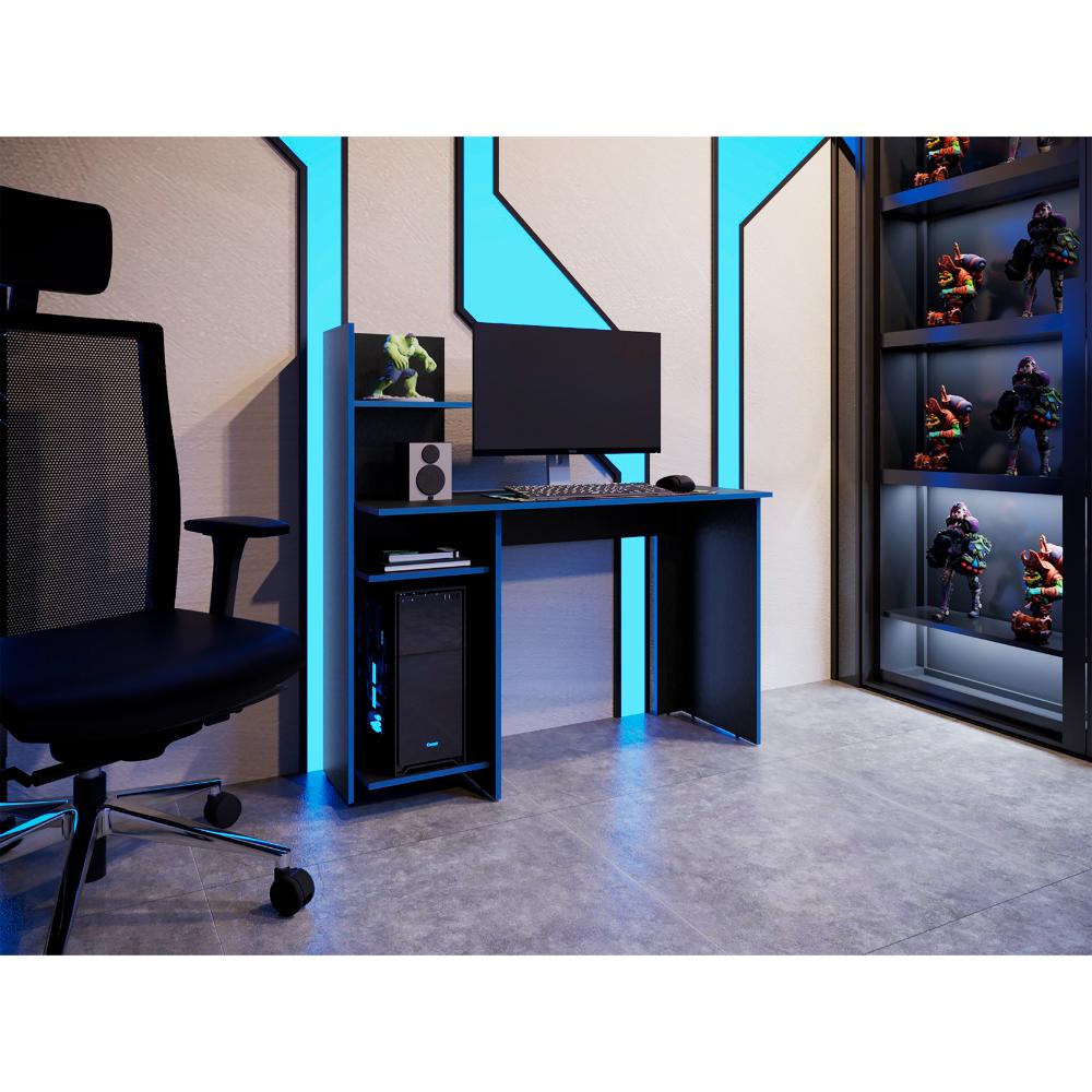 Escritorio Gamer Vilna, Wengue y Azul, con cuatro entrepaños