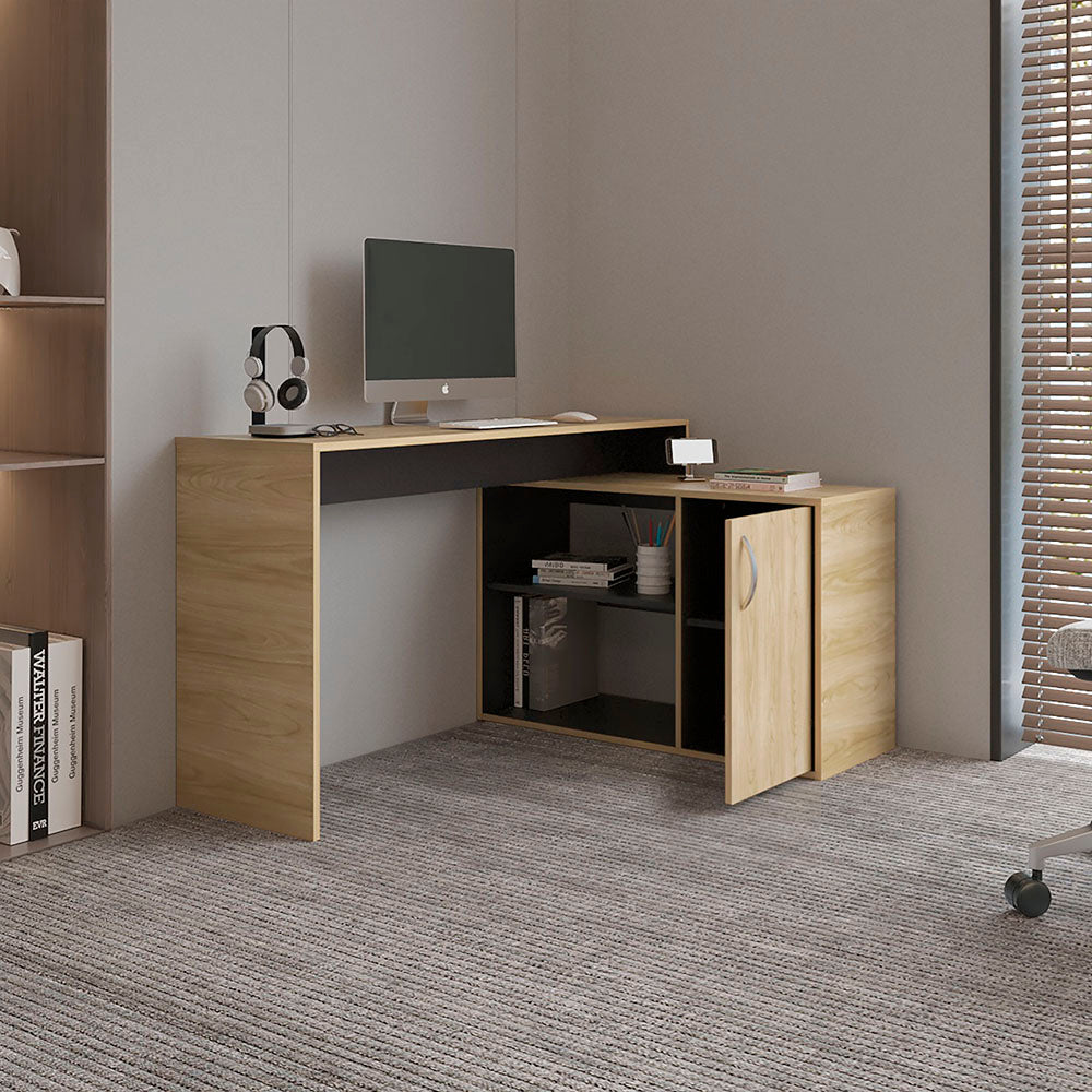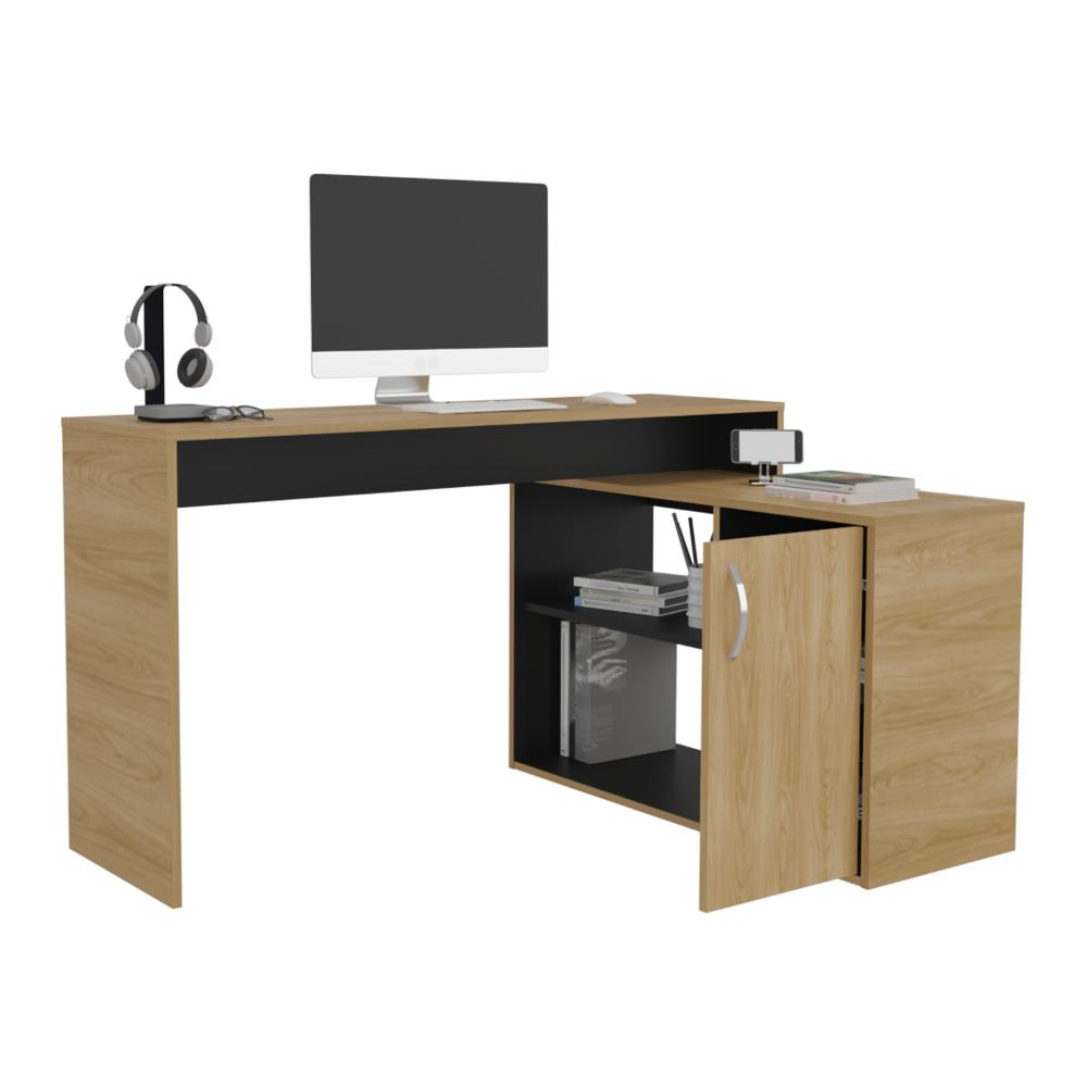 Escritorio Mafe, Fresno Europeo y Wengue, con amplio espacio de trabajo