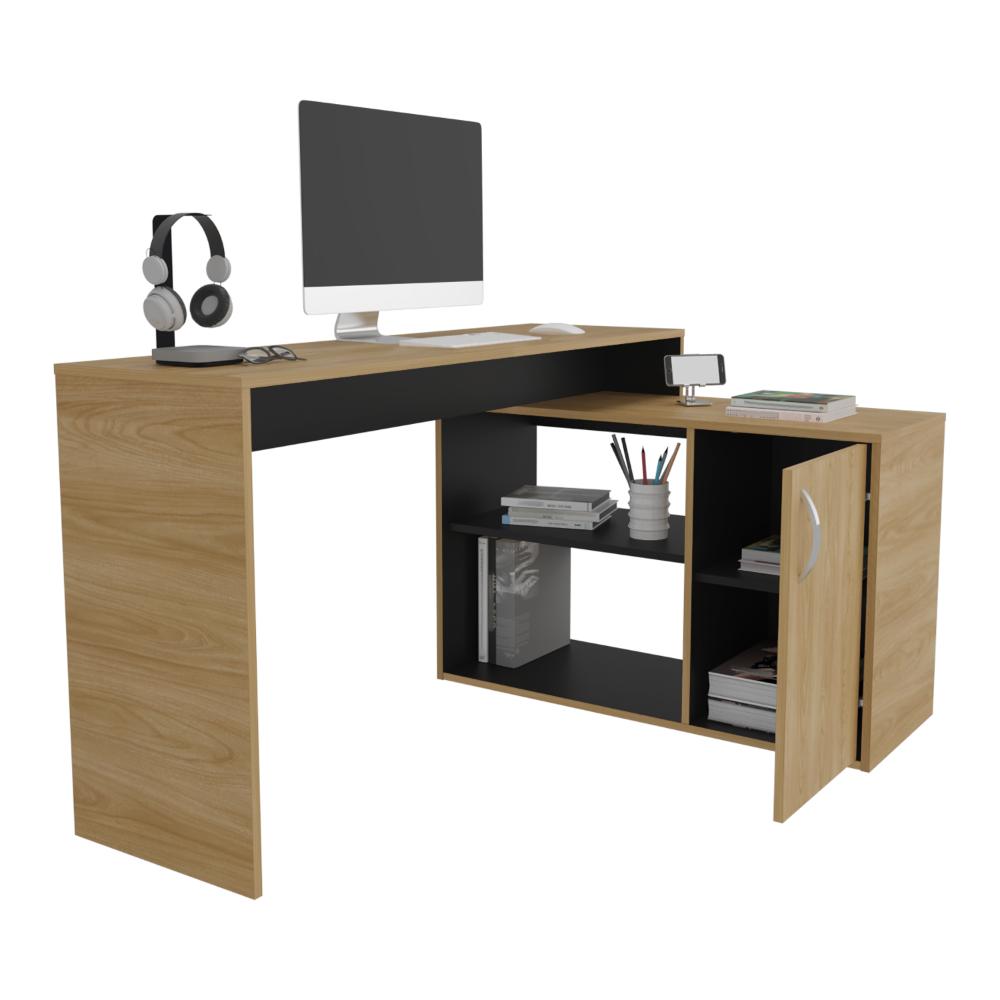 Escritorio con entrepaño grande para almacenar libros u otros objetos decorativos, amplio espacio de trabajo