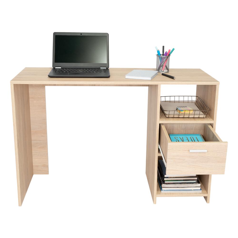 Escritorio, con amplia superficie de trabajo,1 cajón para almacenamiento y dos entrepaños.
