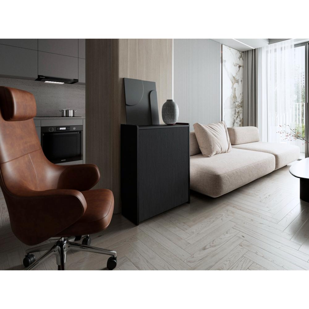 Elaborado en Madera aglomerada MDP, recubierta con láminas melamínicas de excelente calidad, en color Wengue.