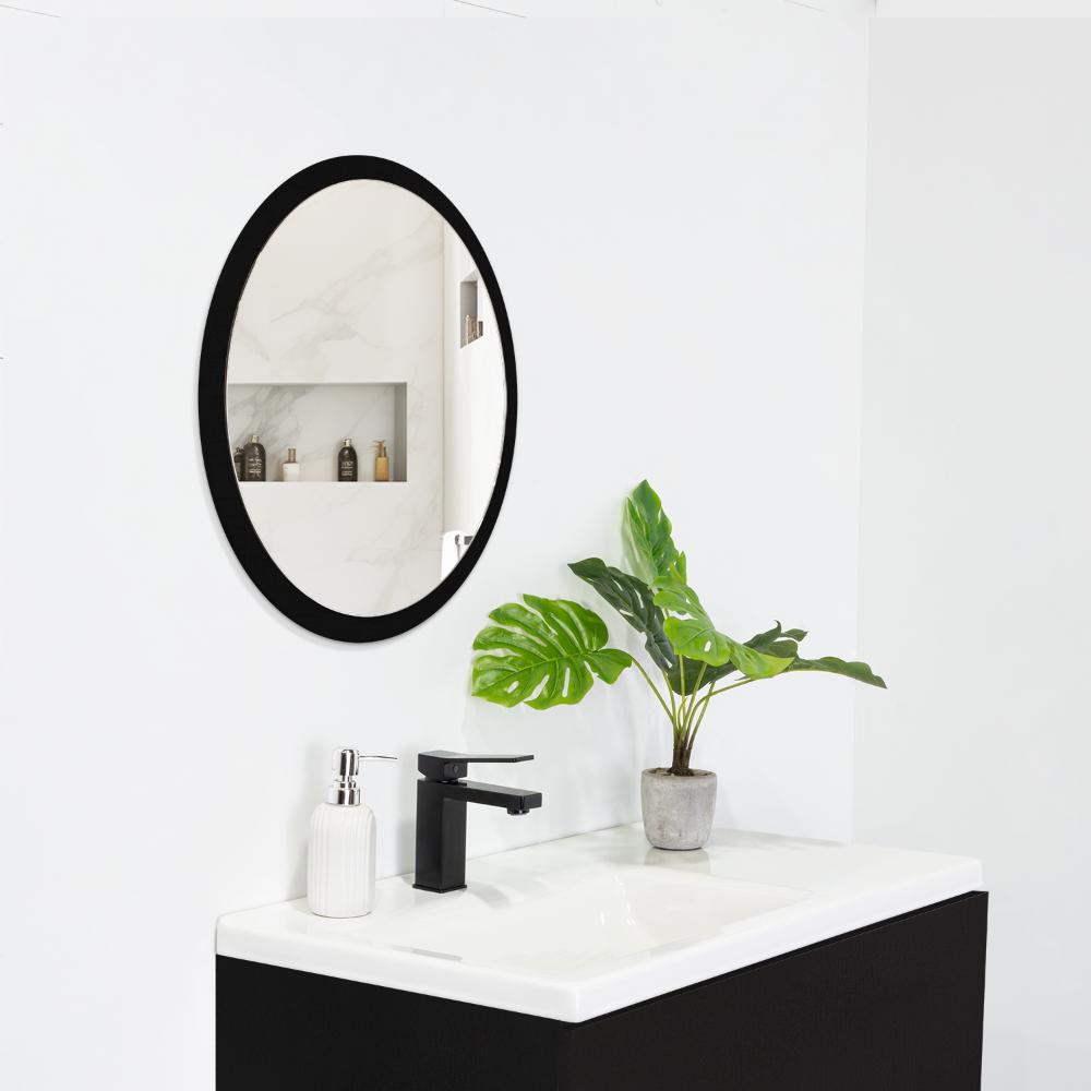 Espejo circular con marco en madera MDP color negro Cal 15mm y espejo Cal 3mm, con chaflán para facilitar su instalación