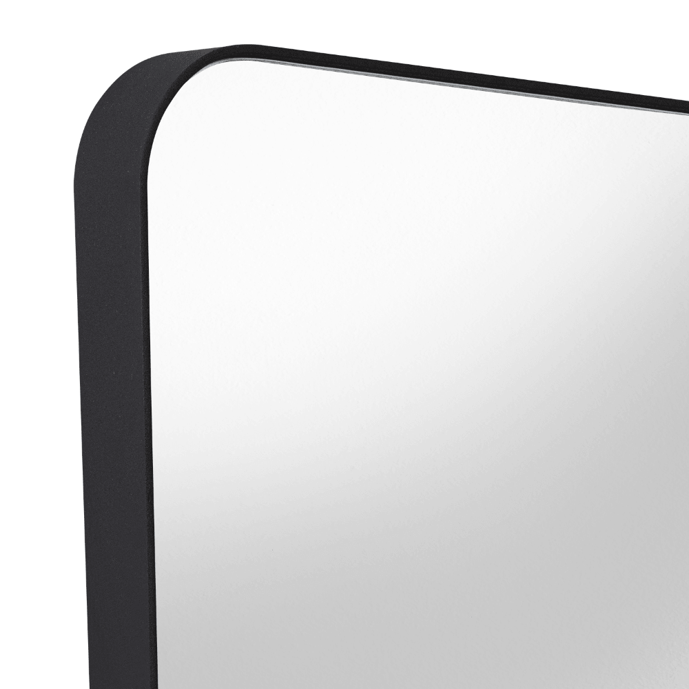 Con bordes redondeados y marco metálico; cuenta con chaflán para su instalación vertical