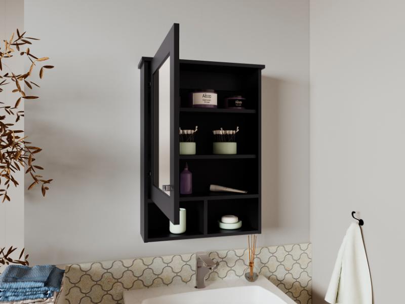 Gabinete de Baño Egeo, Wengue, con Puerta Espejo y Tres Entrepaños Para Ubicar Objetos ZF