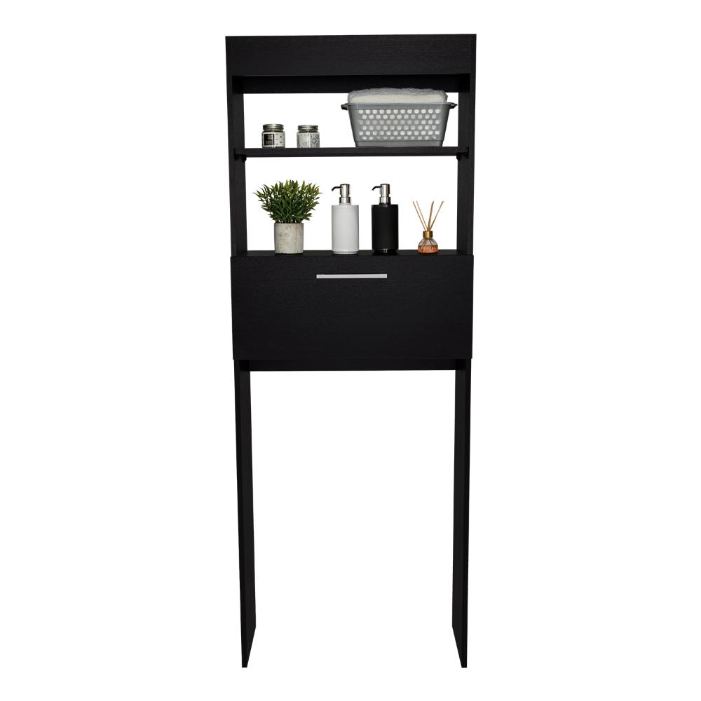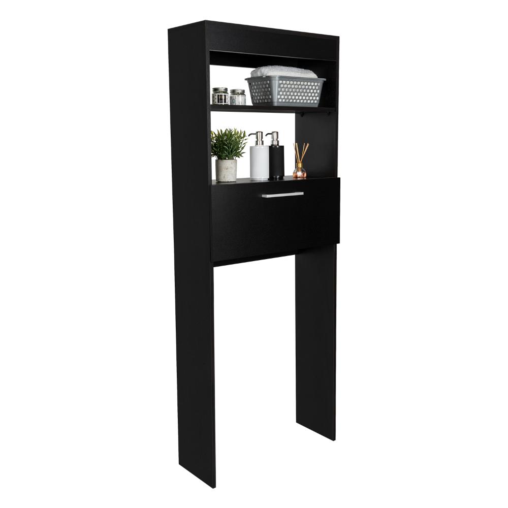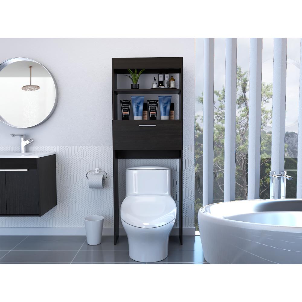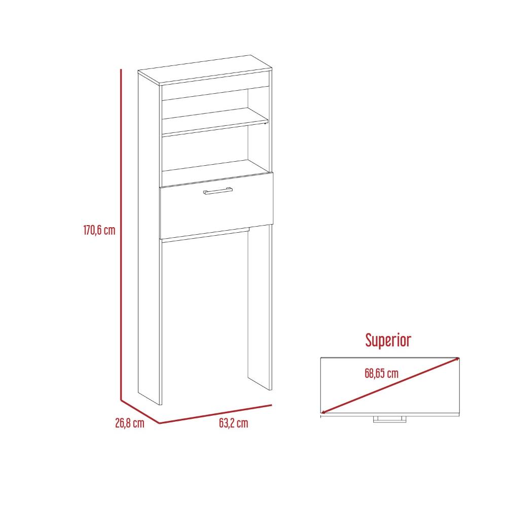 Gabinete de Baño, Ahorrador de espacio sobre sanitario de 60cm ancho, espacio para elementos de aseo, manija metálica, puerta abatible y entrepaño móvil.
