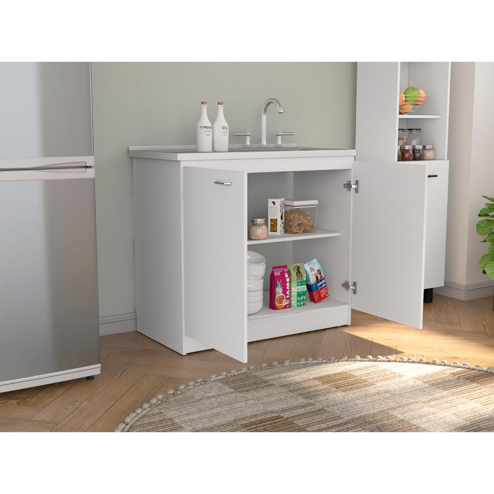 Gabinete Inferior Cantabria, Blanco, con Dos Puertas Abatibles y Mesón derecho ZF